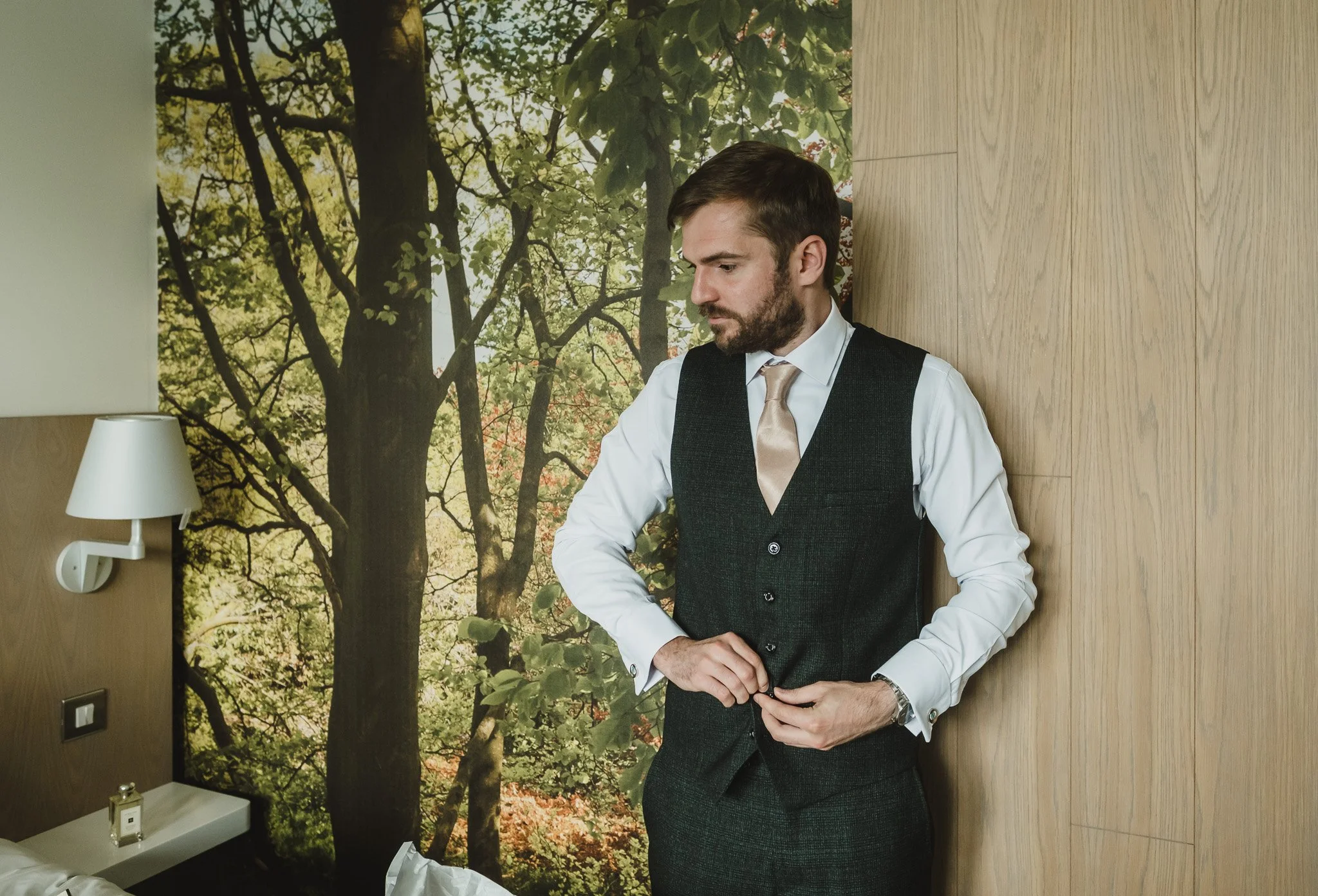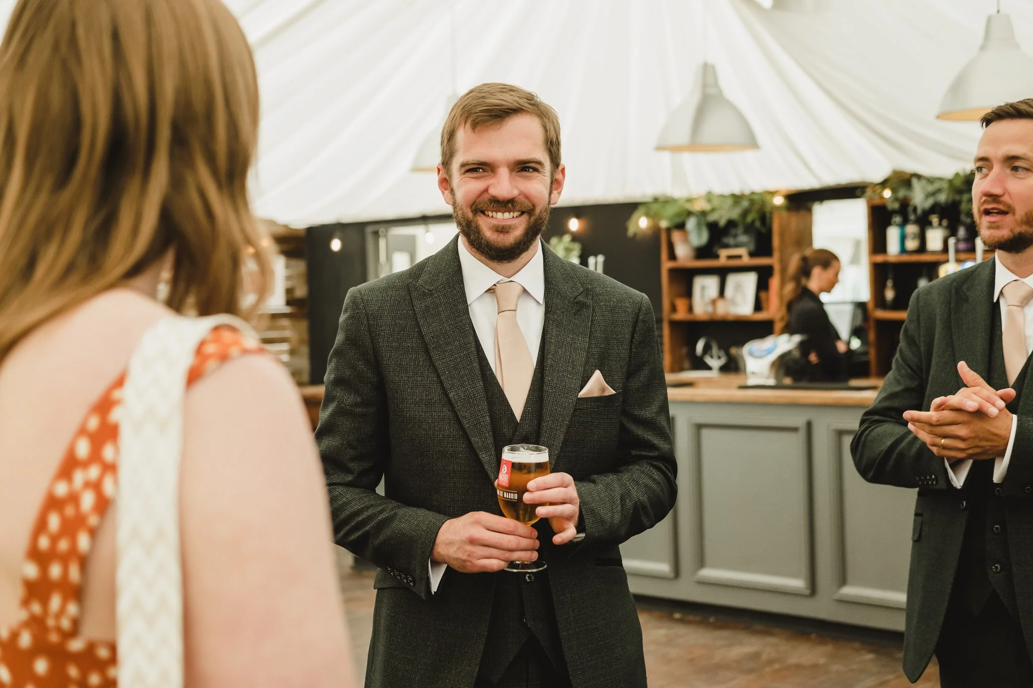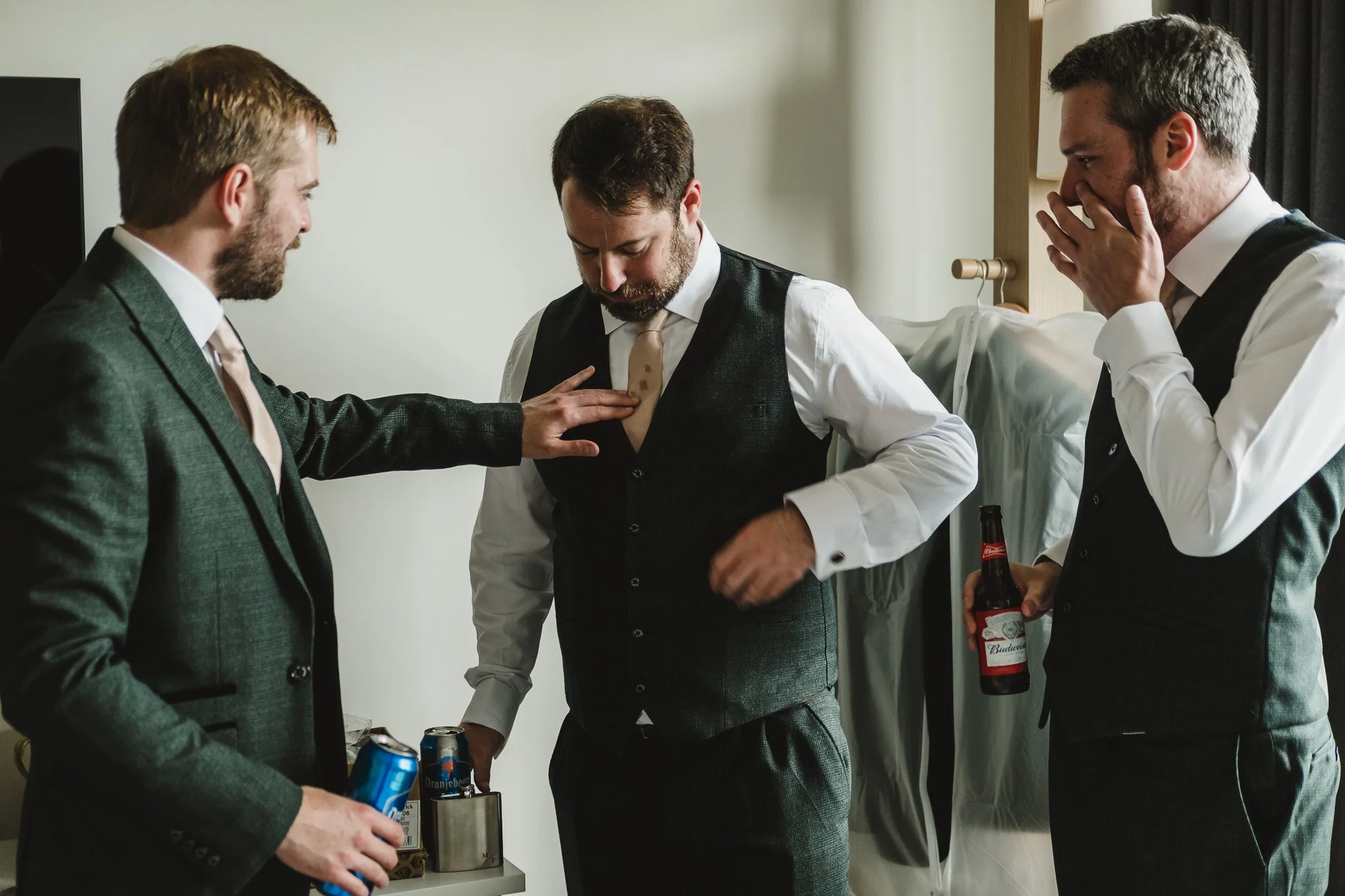 This beautiful summer wedding began at The Orchard on the University of Nottingham campus such a calm, light-filled space to start a wedding day. I joined the bride for those final getting-ready moments before briefly catching up with the boys for their last few relaxed shots (and a pre-ceremony drink in the bar… priorities, obviously).
