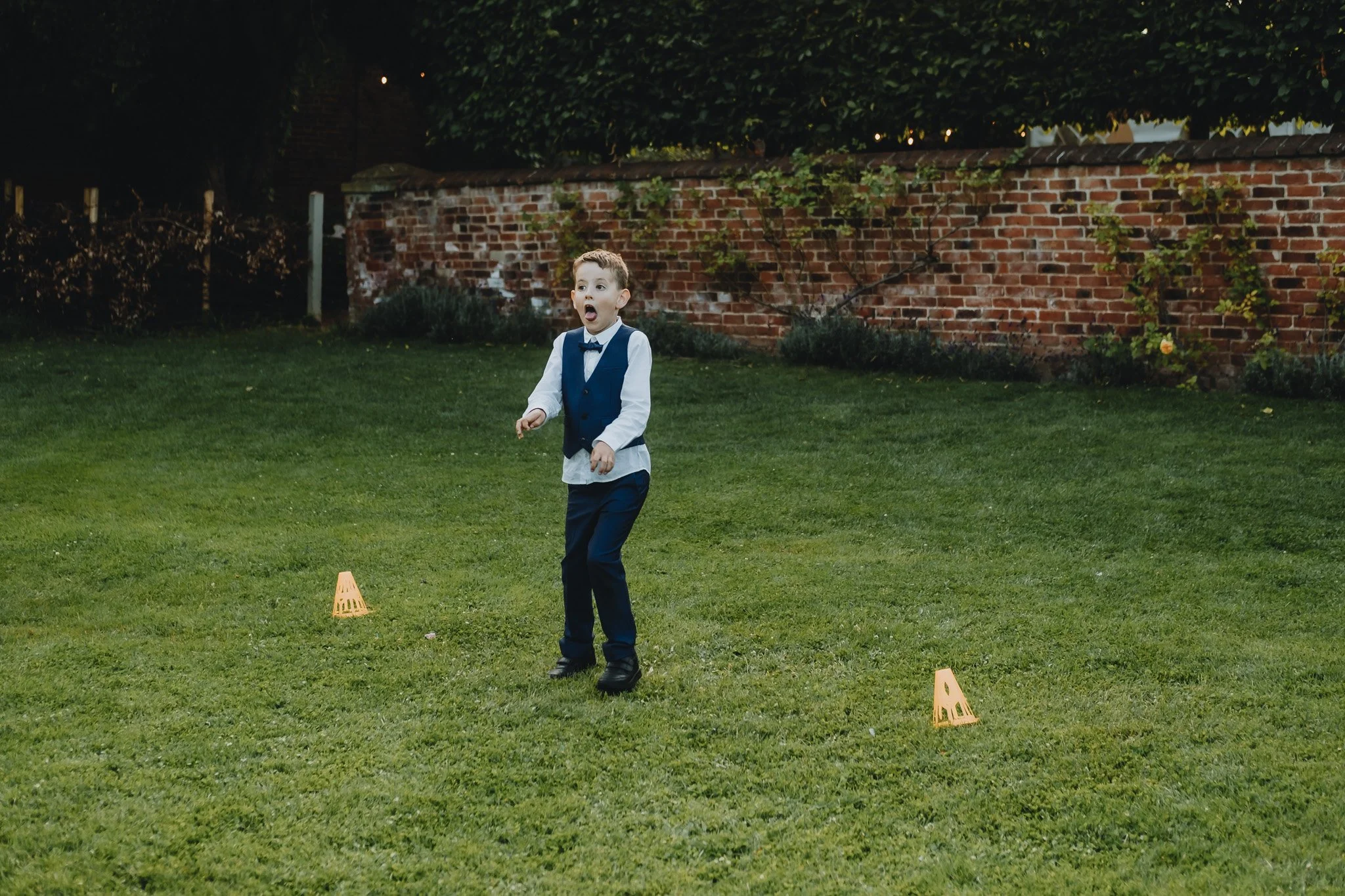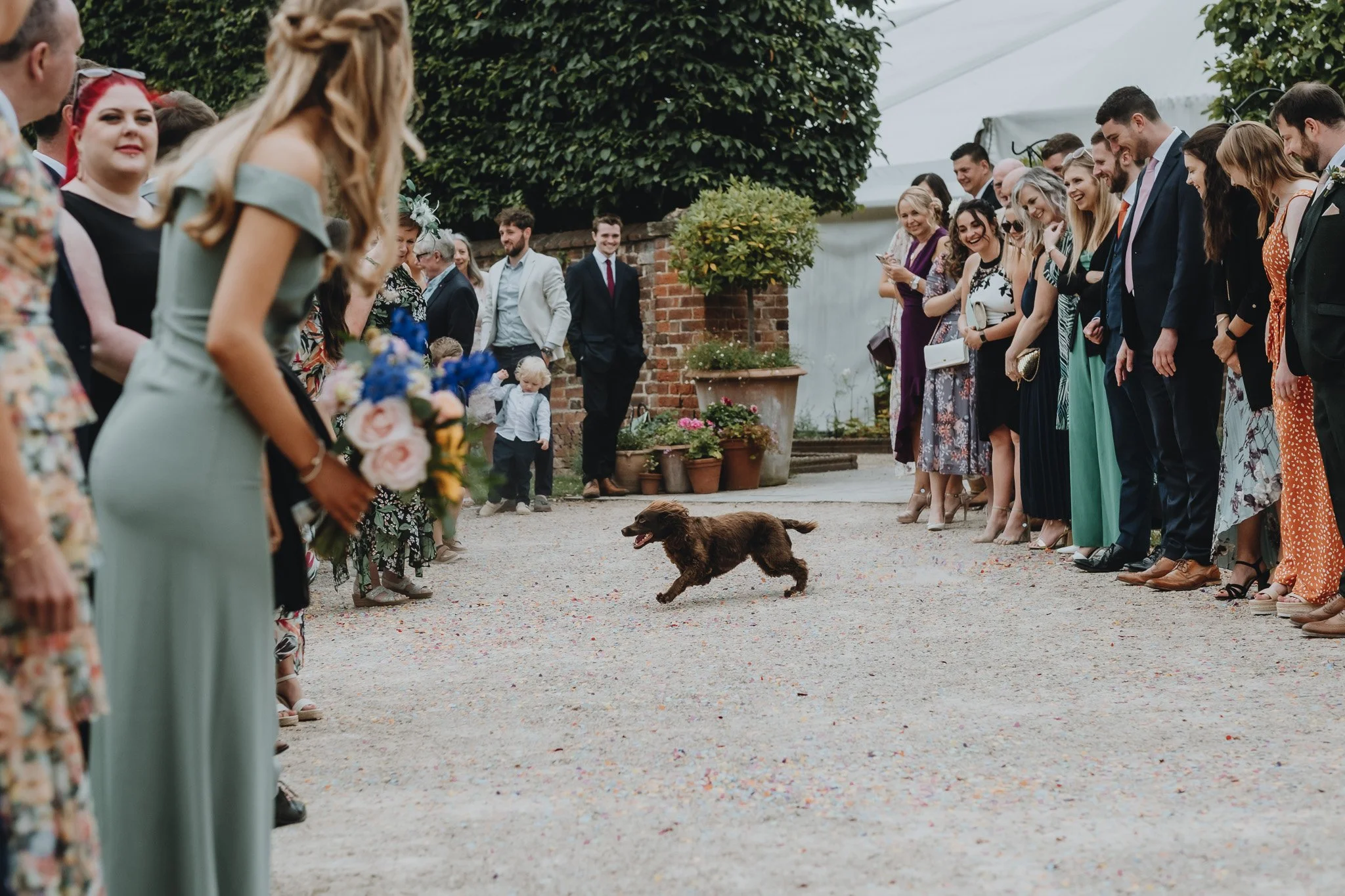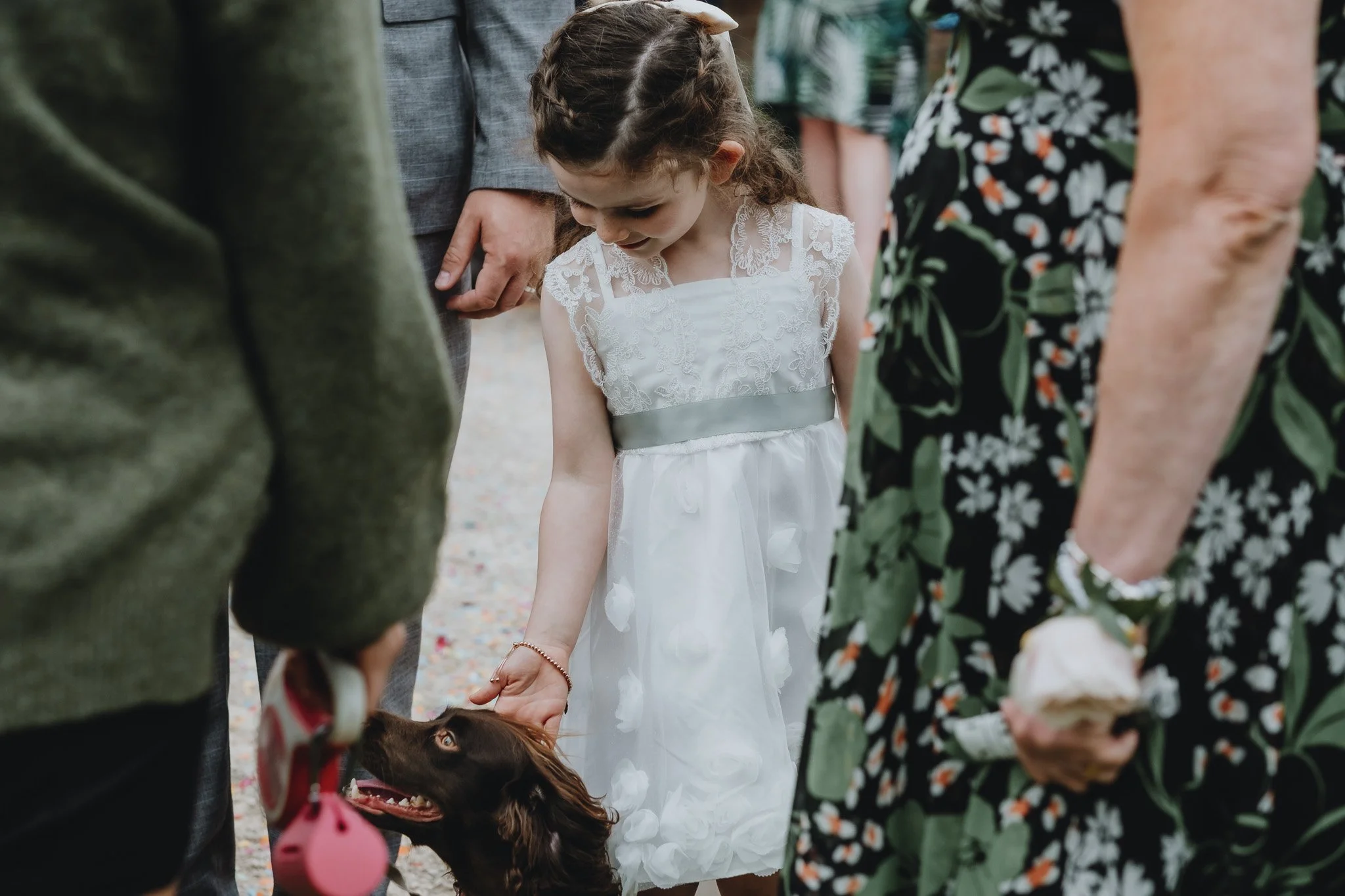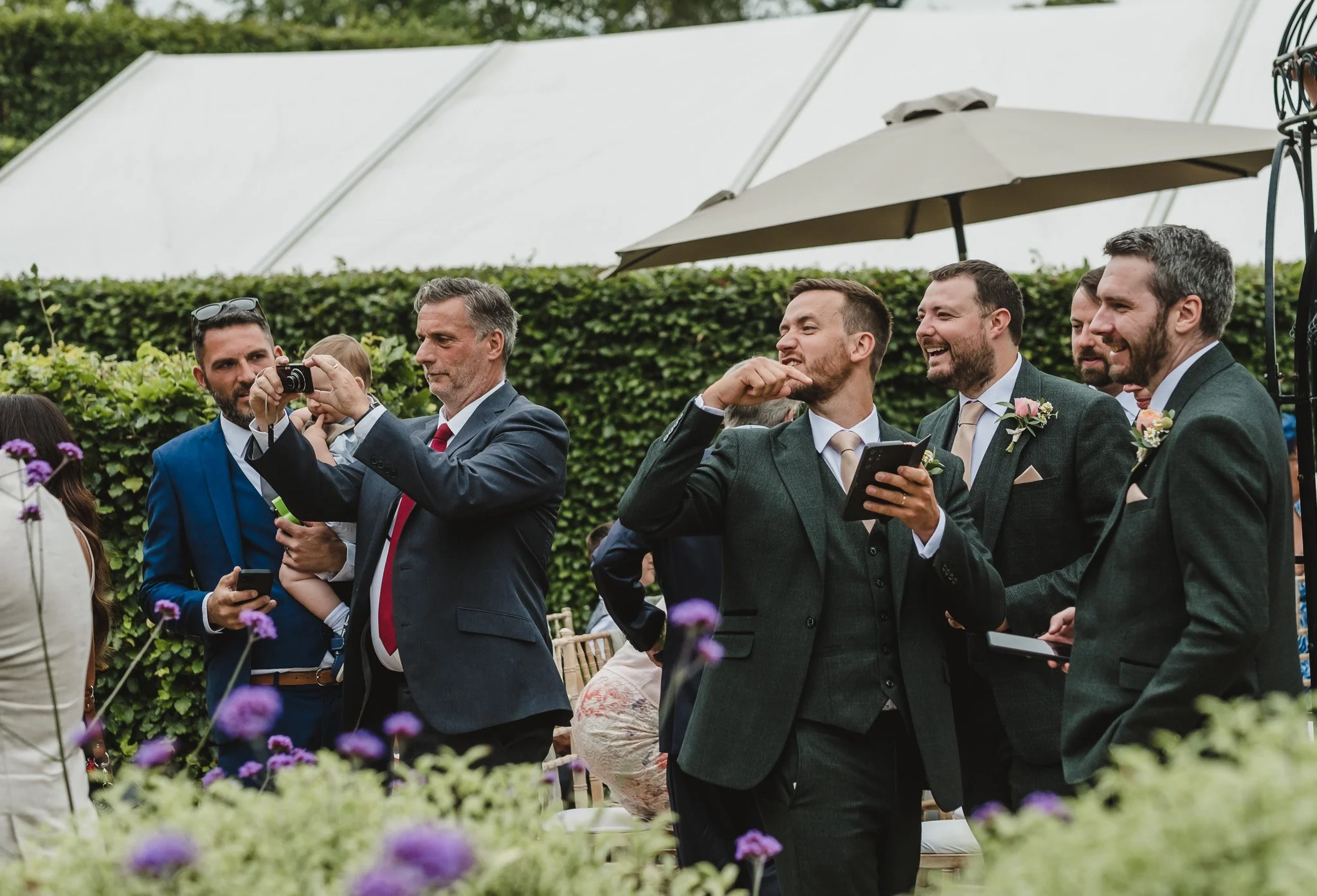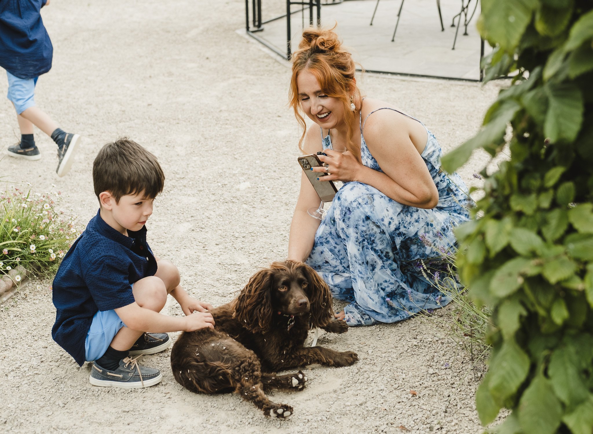 Guests arrived slowly, soaking up the July sunshine, and the couple’s spaniel made a cheerful appearance to say hello (expertly supervised by a friend). Meanwhile, children claimed the front lawn for an enthusiastic game of football, joyful chaos in the best way.