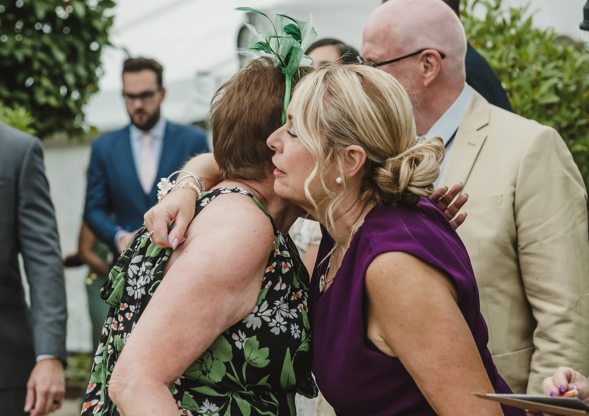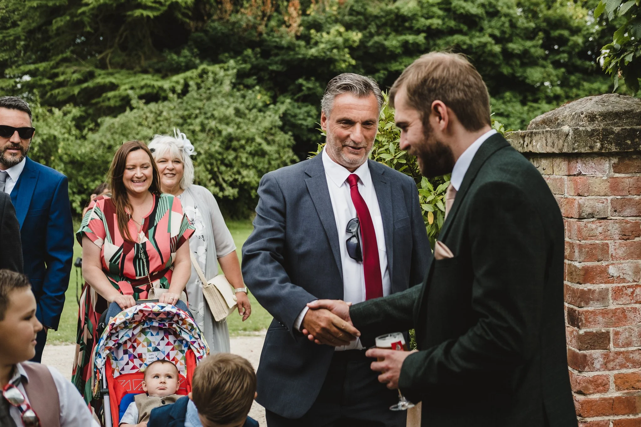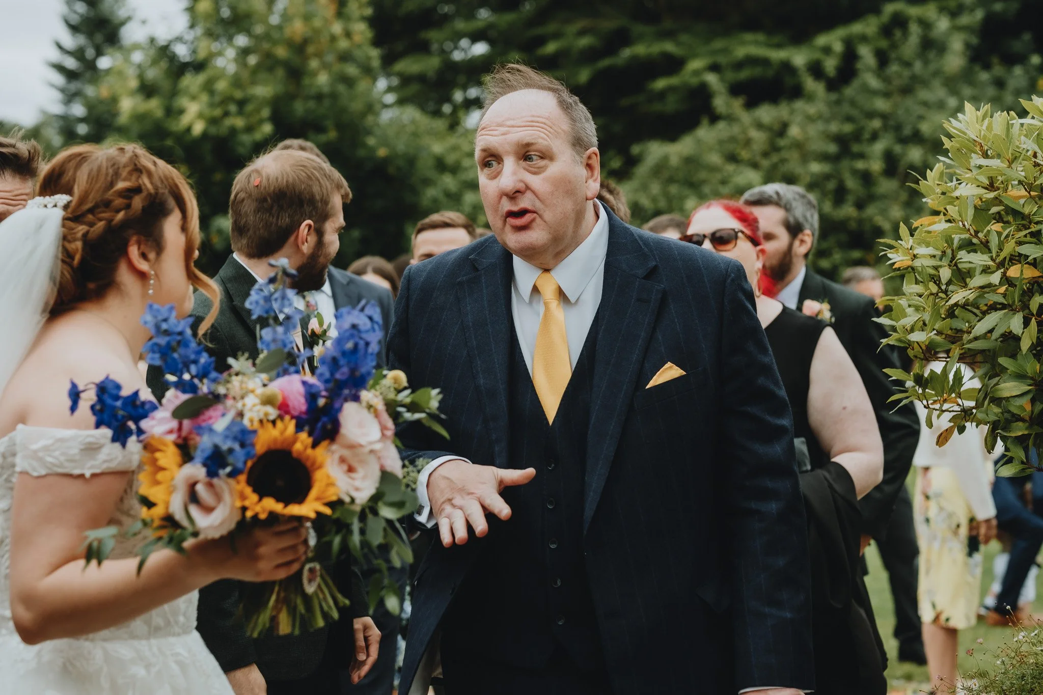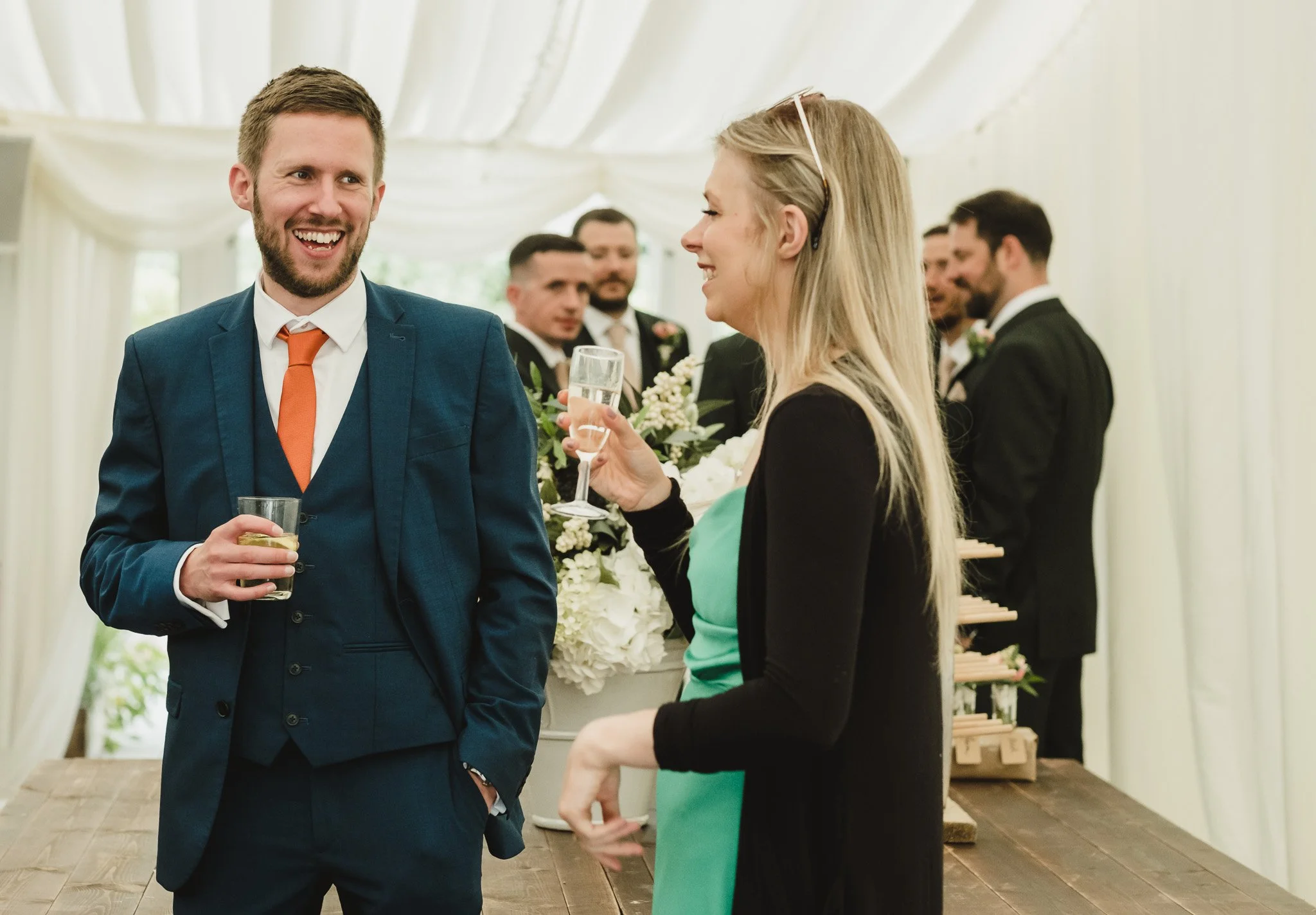 Guests arrived slowly, soaking up the July sunshine, and the couple’s spaniel made a cheerful appearance to say hello (expertly supervised by a friend). Meanwhile, children claimed the front lawn for an enthusiastic game of football, joyful chaos in the best way.