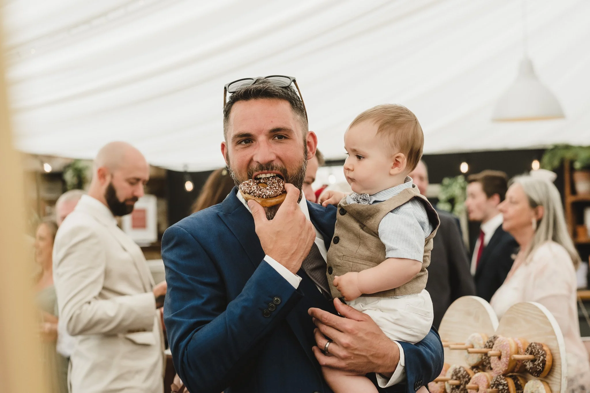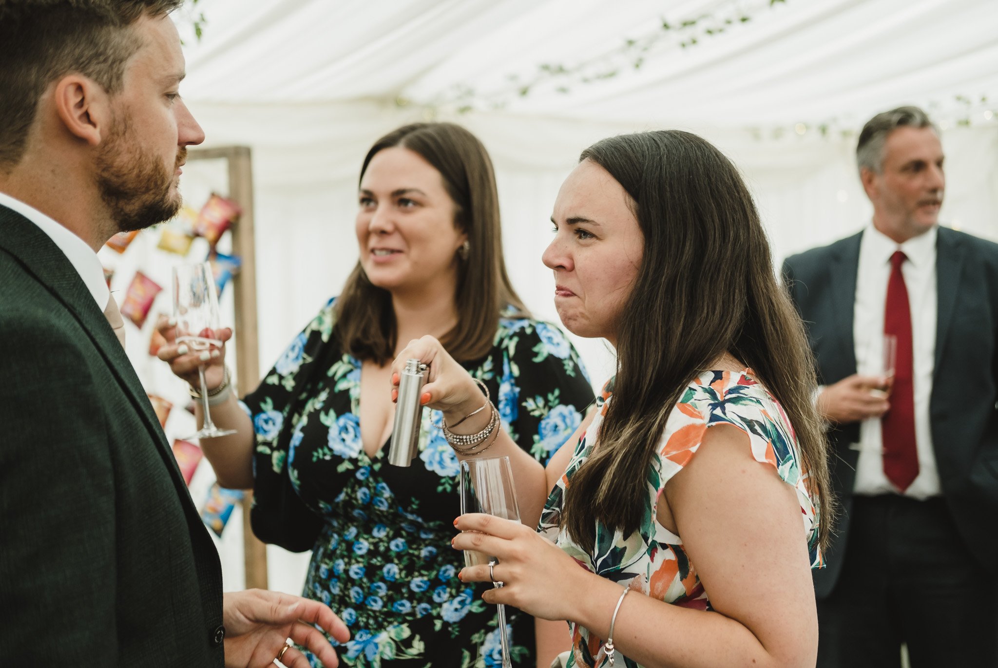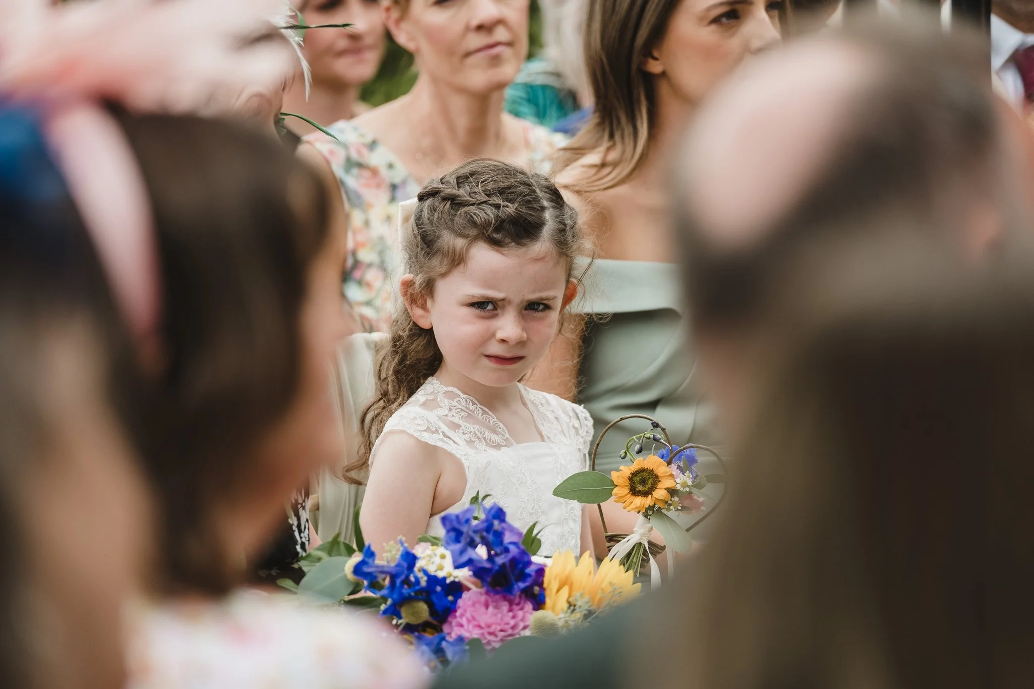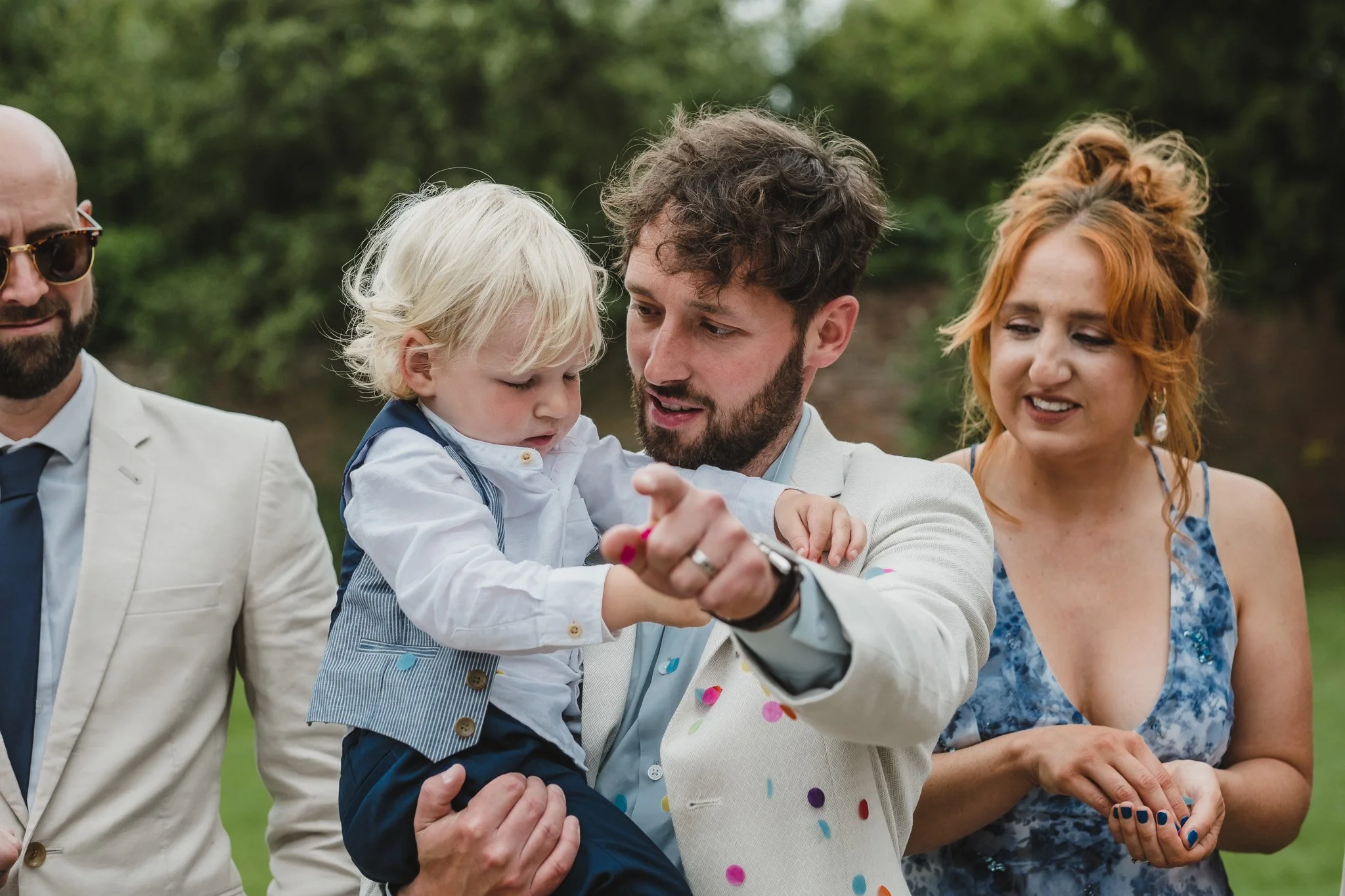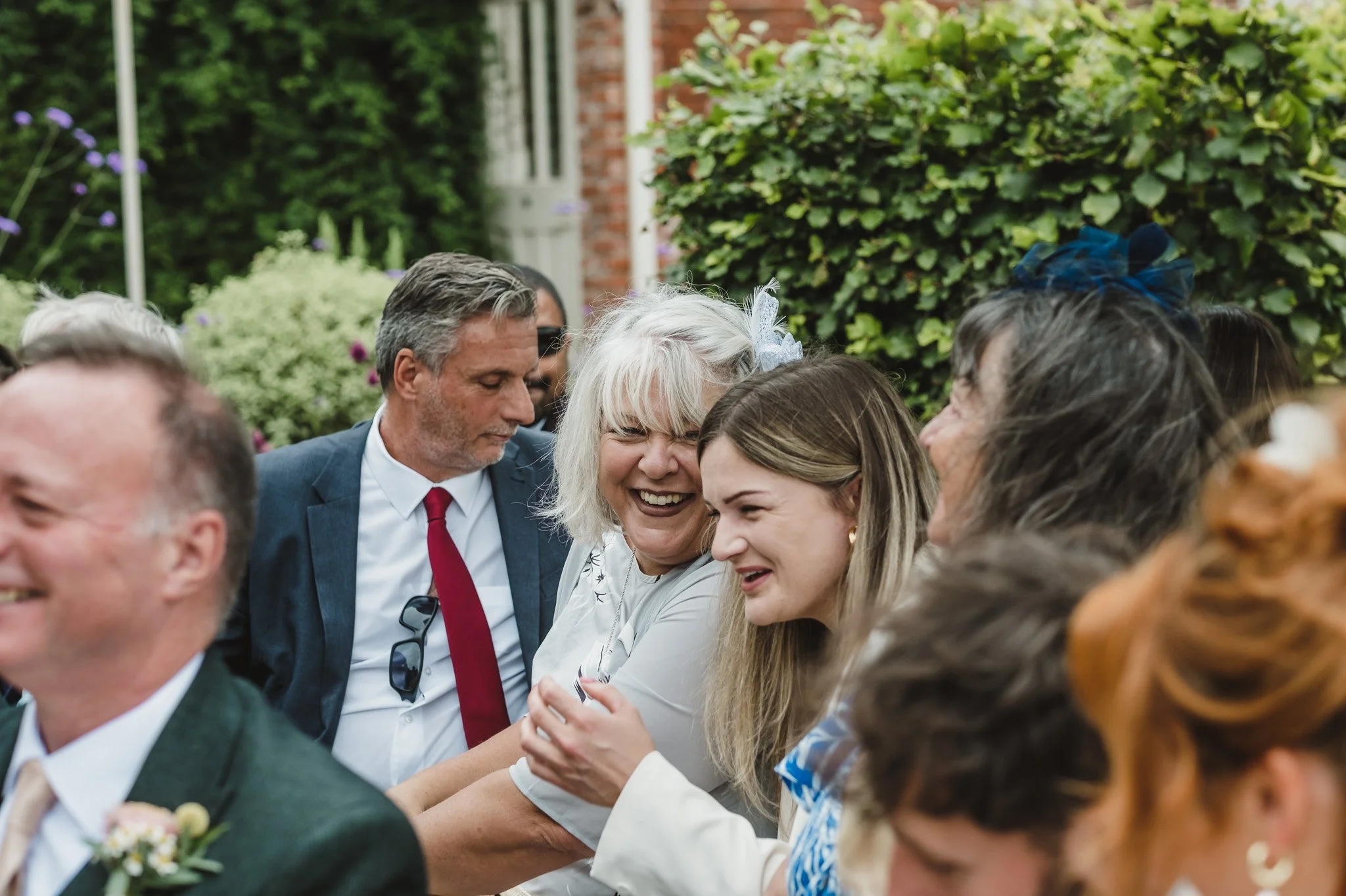 Guests arrived slowly, soaking up the July sunshine, and the couple’s spaniel made a cheerful appearance to say hello (expertly supervised by a friend). Meanwhile, children claimed the front lawn for an enthusiastic game of football, joyful chaos in the best way.