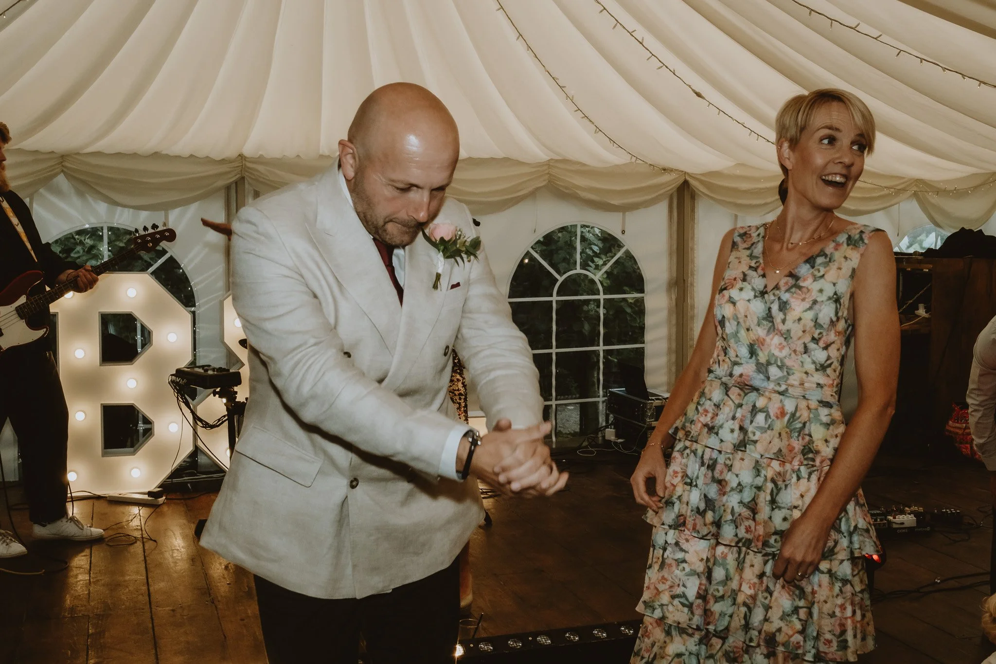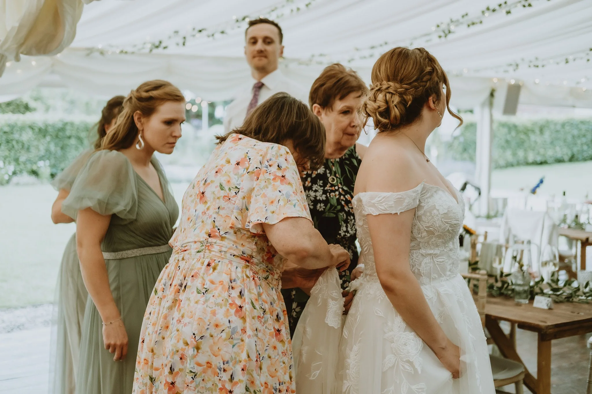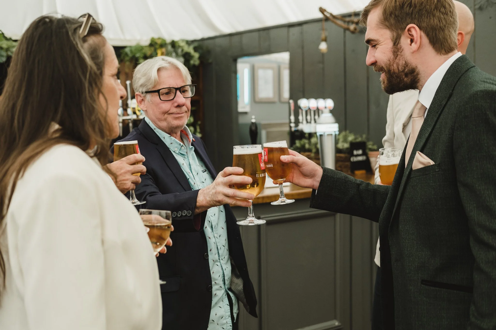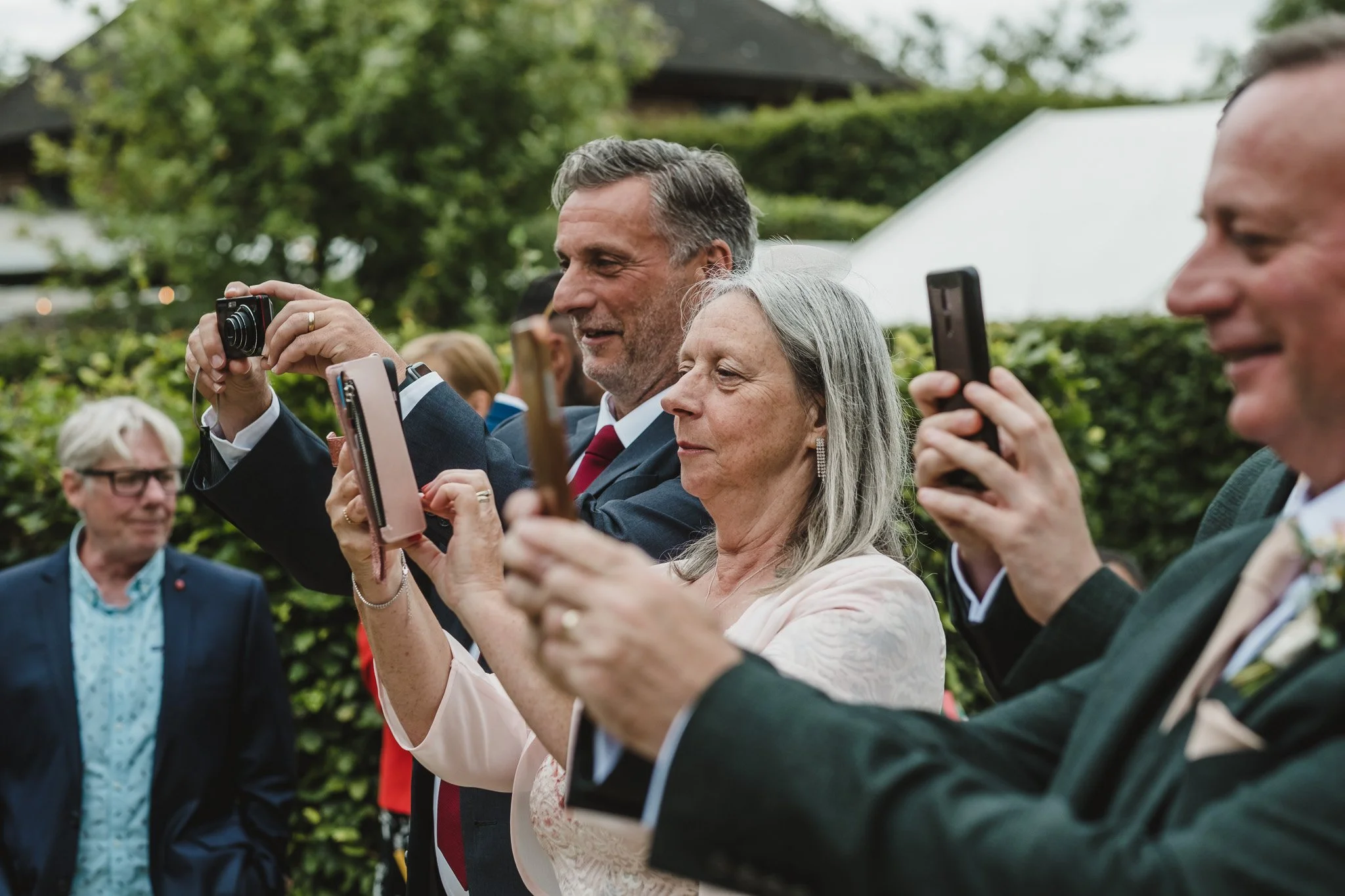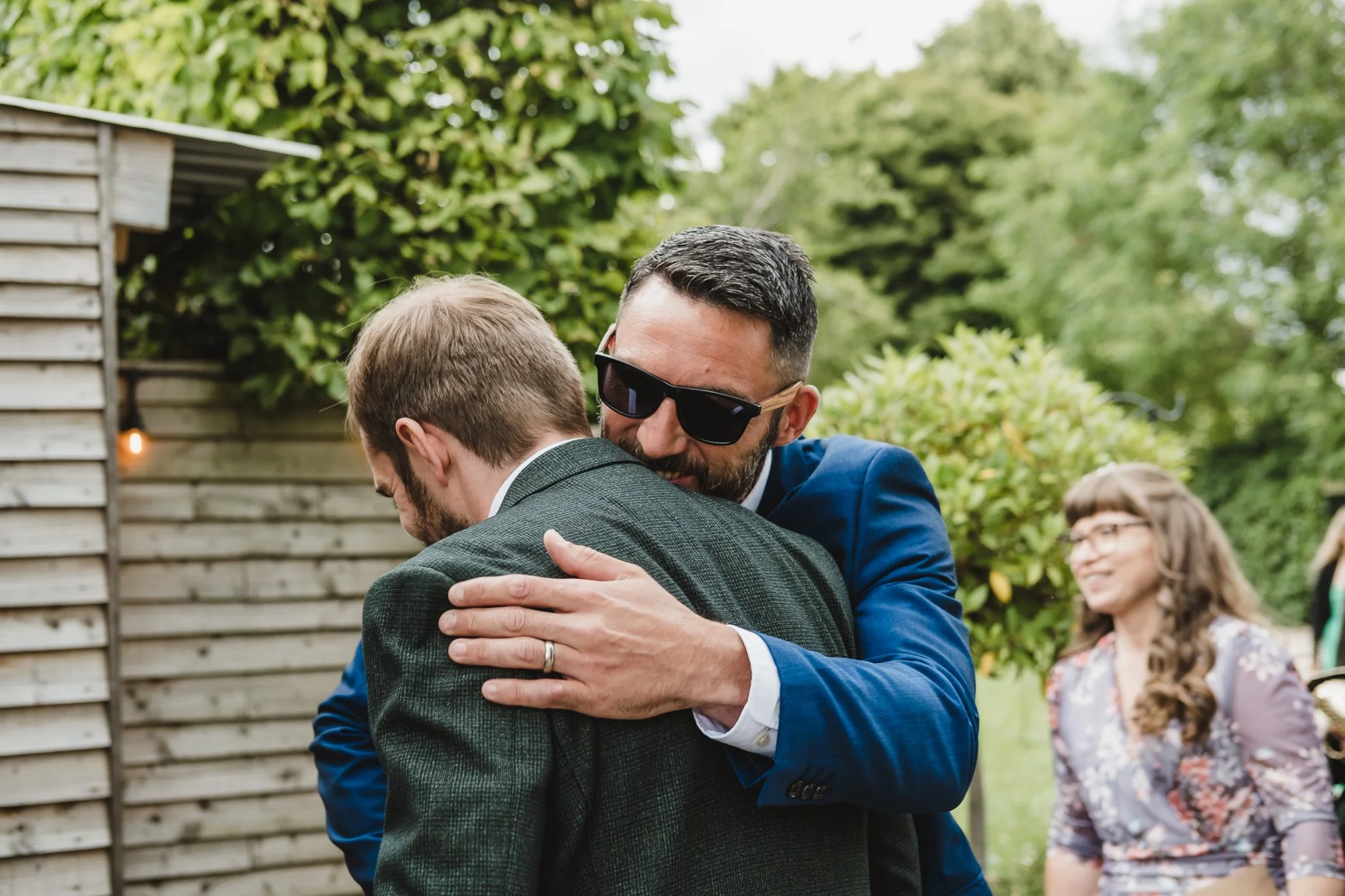 Guests arrived slowly, soaking up the July sunshine, and the couple’s spaniel made a cheerful appearance to say hello (expertly supervised by a friend). Meanwhile, children claimed the front lawn for an enthusiastic game of football, joyful chaos in the best way.
