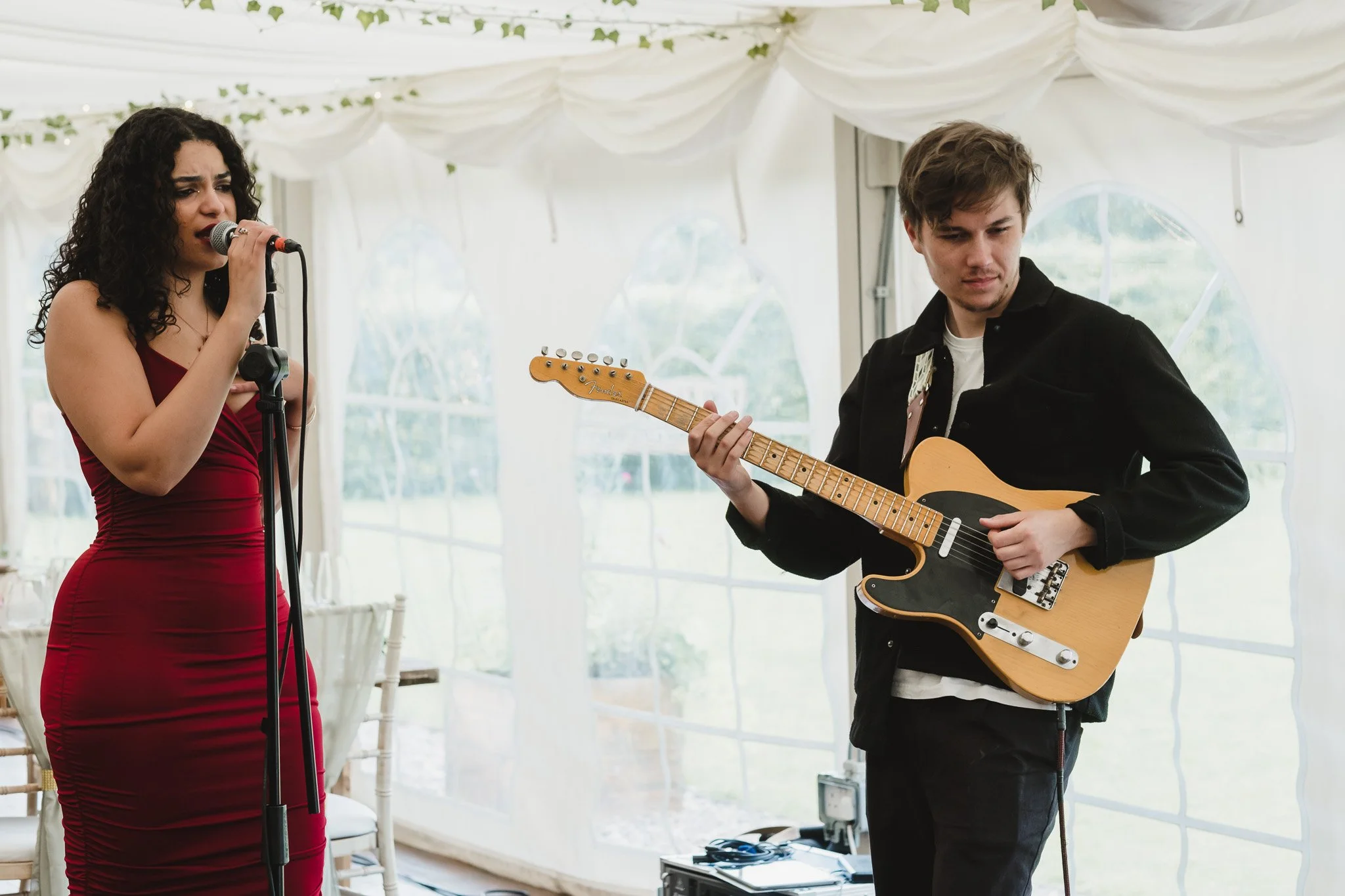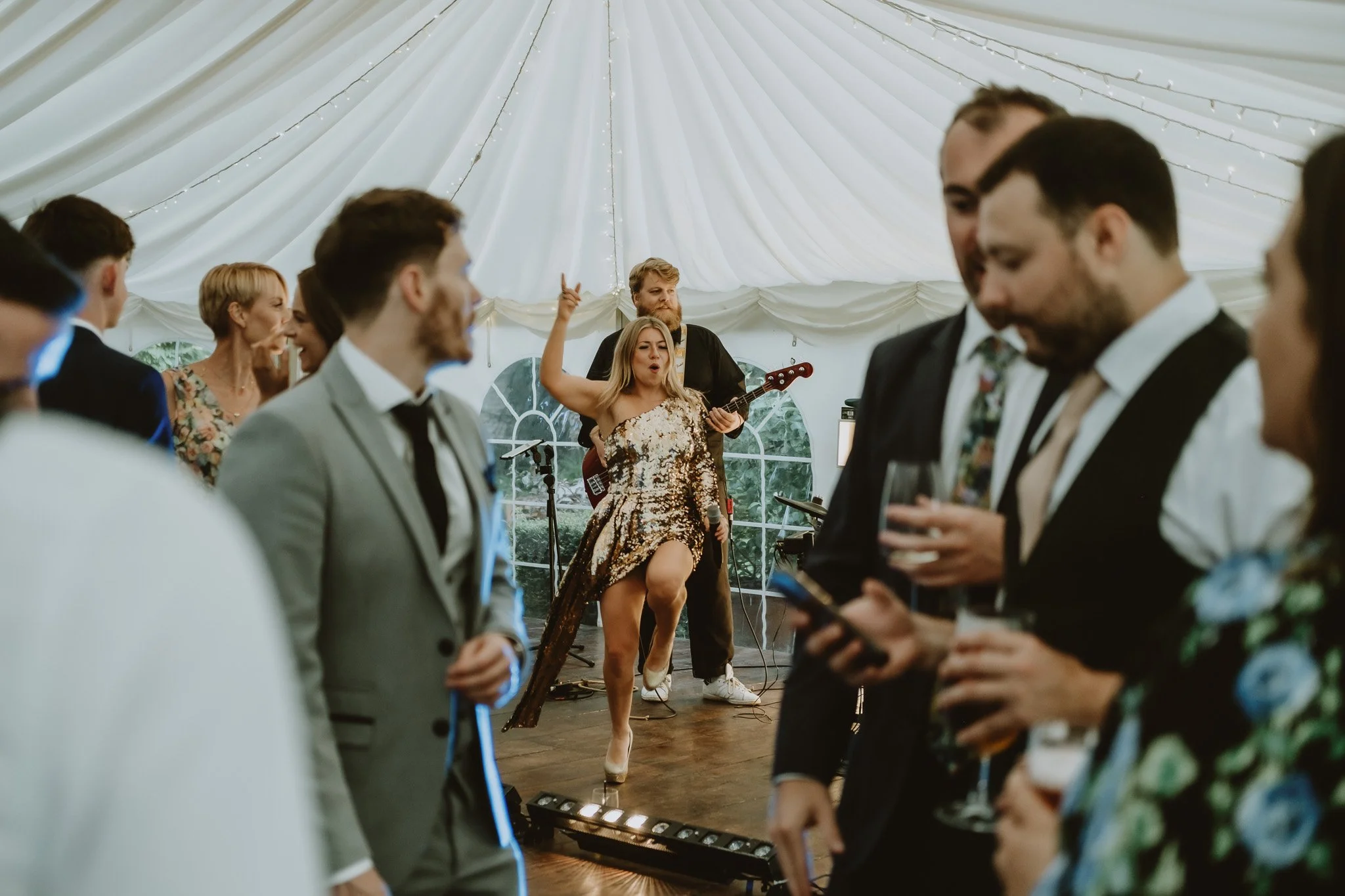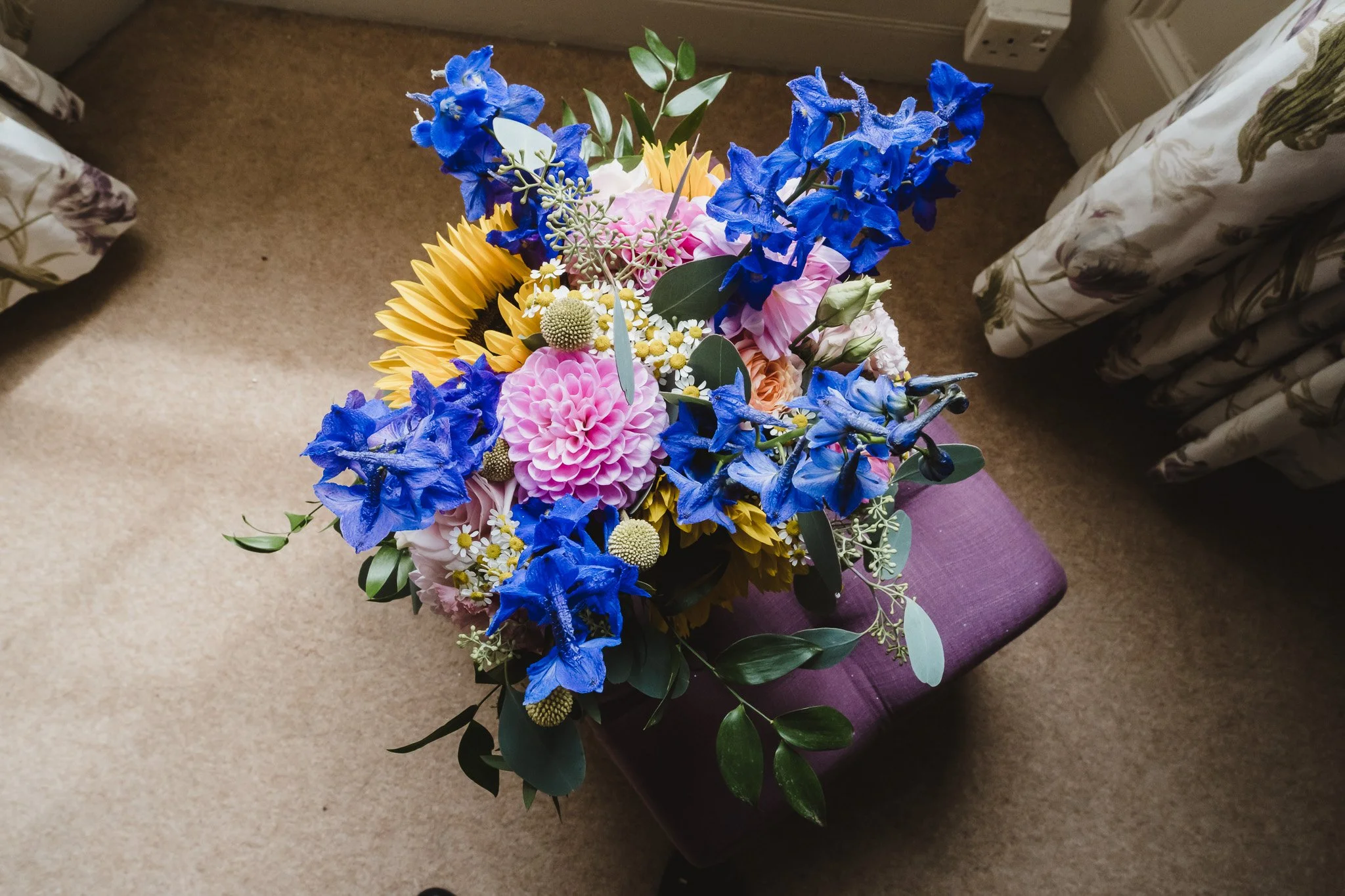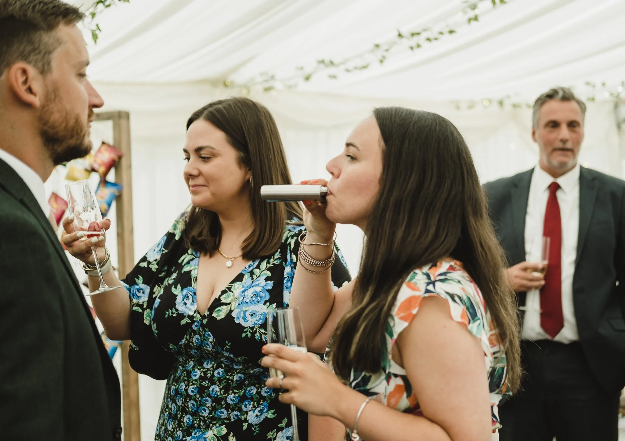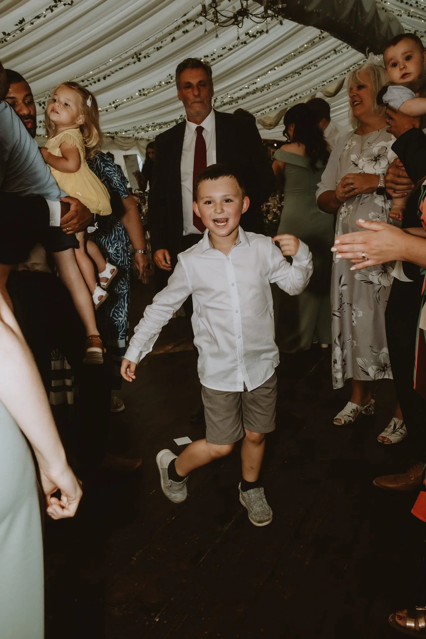 Guests arrived slowly, soaking up the July sunshine, and the couple’s spaniel made a cheerful appearance to say hello (expertly supervised by a friend). Meanwhile, children claimed the front lawn for an enthusiastic game of football, joyful chaos in the best way.