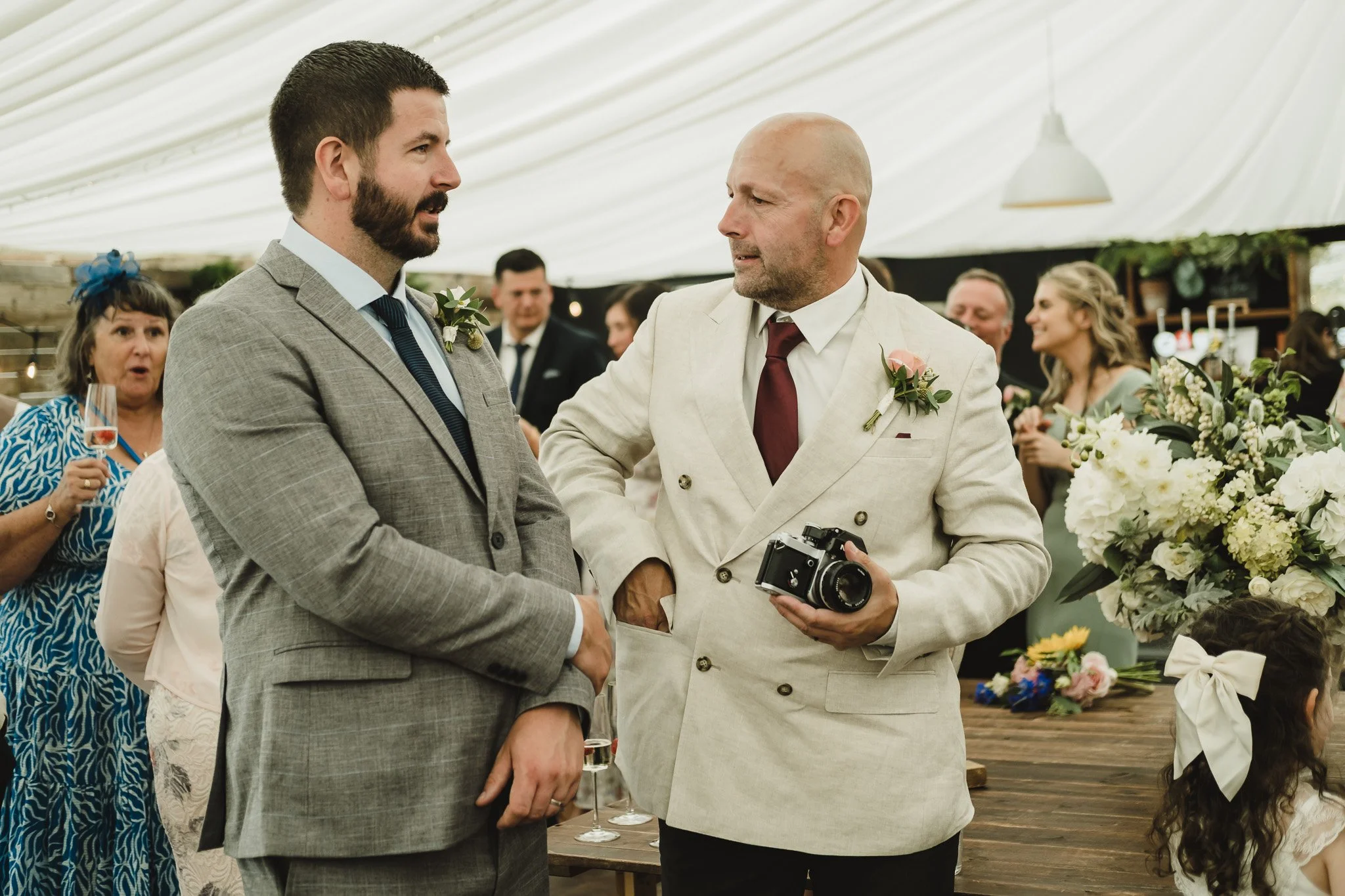 As a second photographer, my role is to observe and anticipate to notice the interactions happening just beyond the main focus. While Holly guided the couple portraits, I stayed in the background capturing alternative angles, reactions, quiet gestures and the wider atmosphere of the day unfolding.