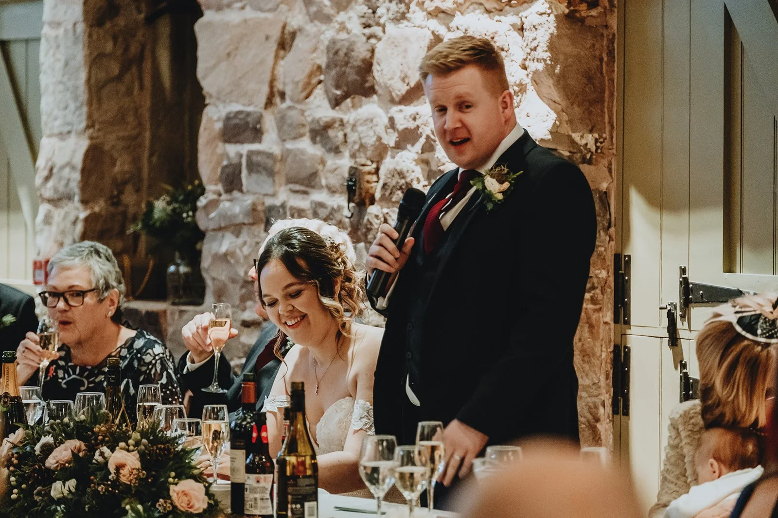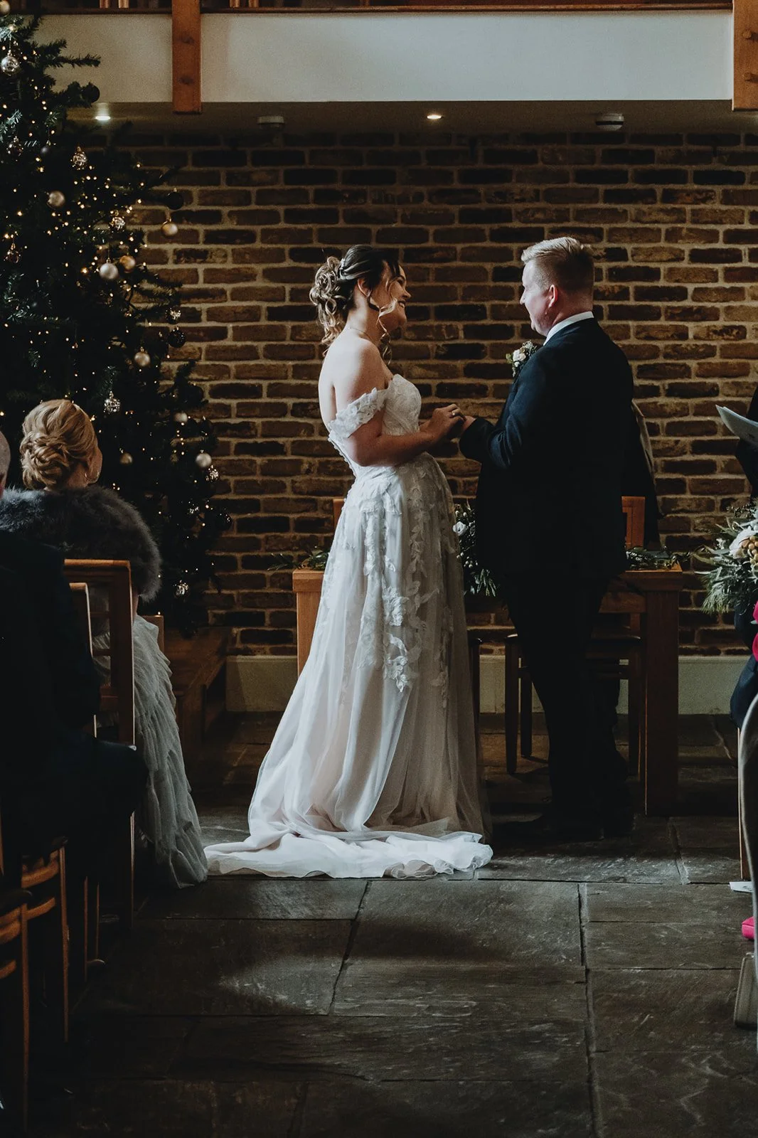 Guests were welcomed with mulled wine and canapés, bringing that cosy, festive December atmosphere into the barns. It felt relaxed, warm, and full of genuine connection exactly the kind of day I love to photograph.