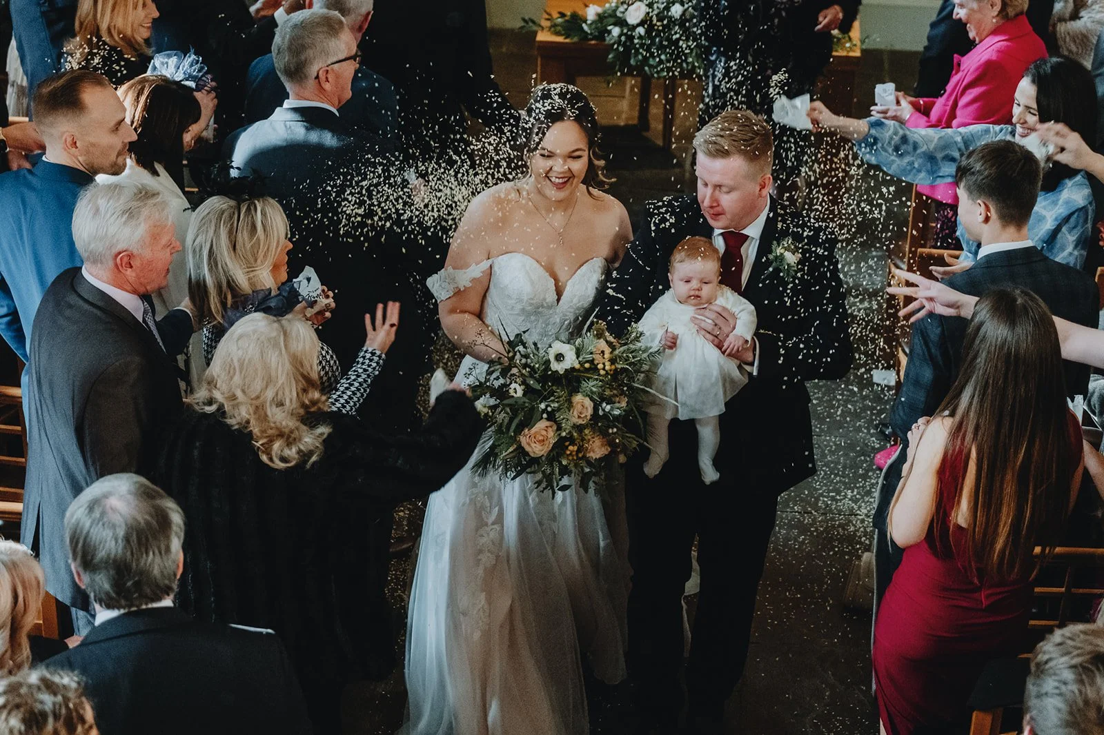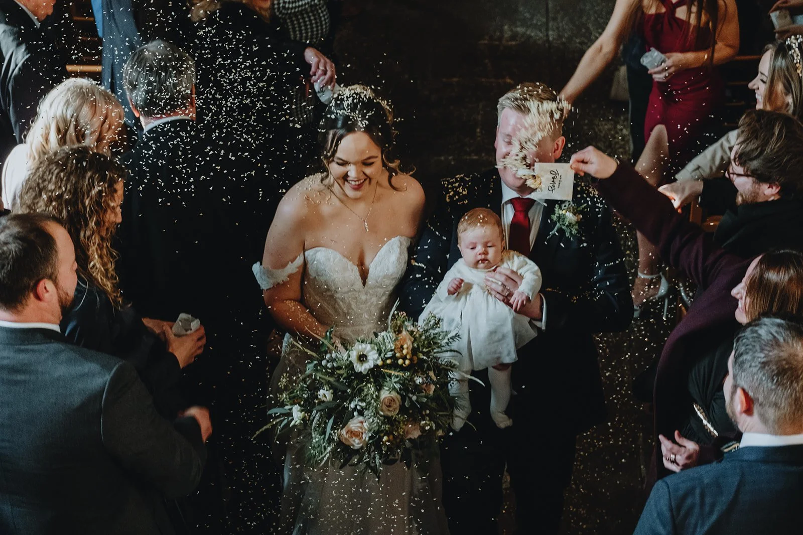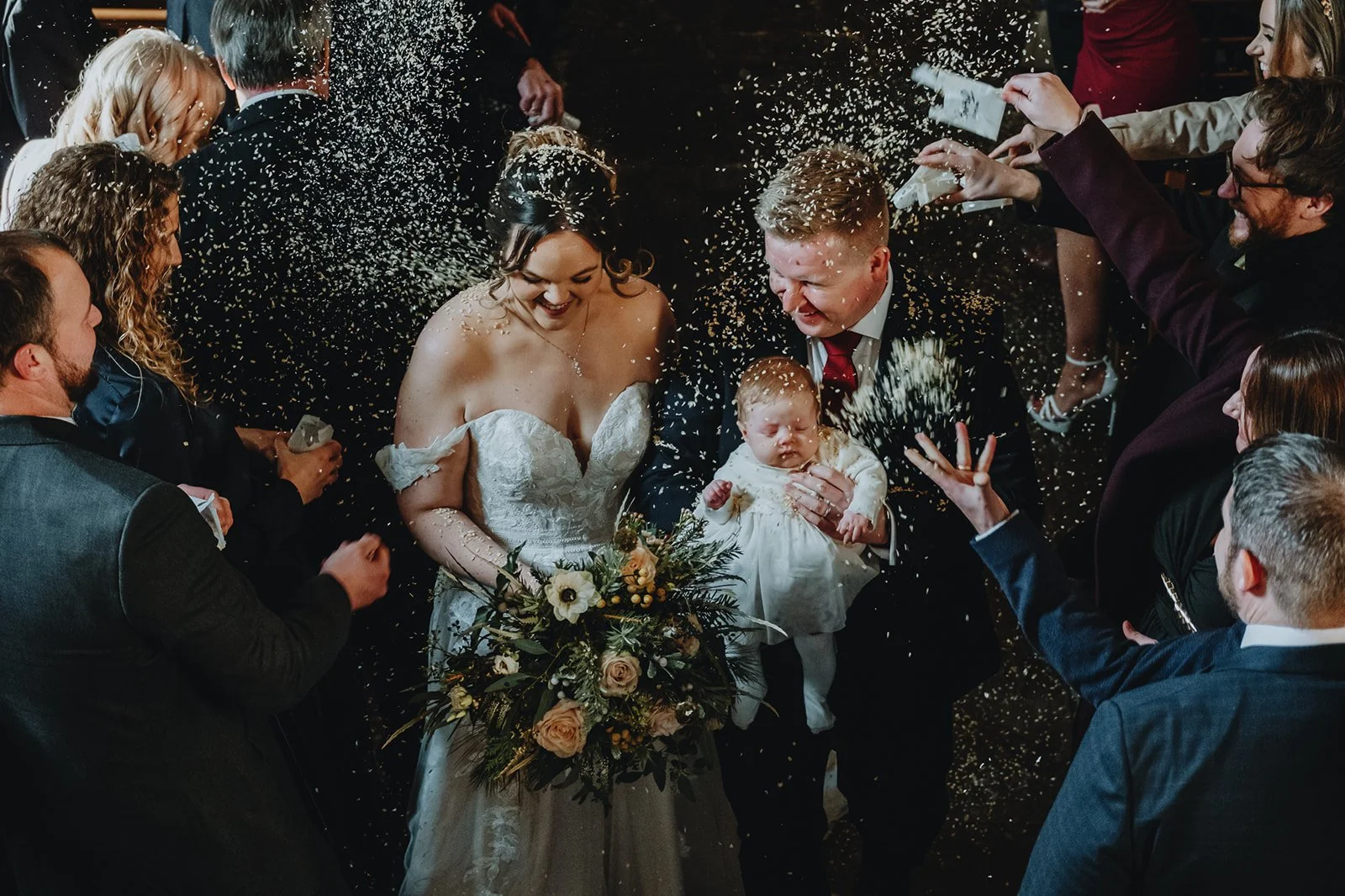 As the rain meant plans had to shift slightly, the confetti moment took place indoors and honestly, it was incredible. The light, the energy, the joy… it all came together to create something really special.