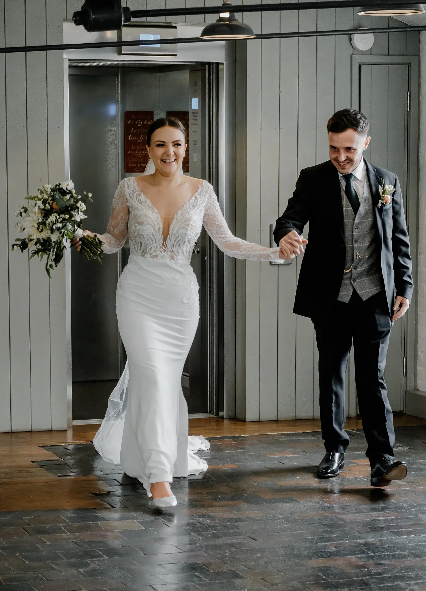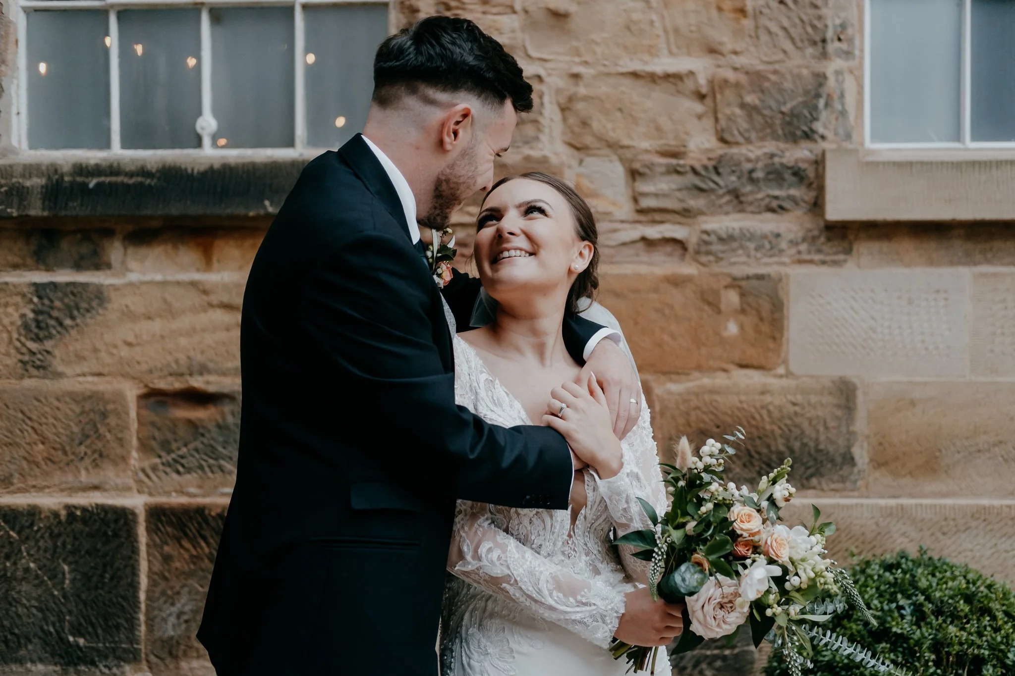 Charlie looked absolutely breathtaking in her figure-hugging dress and classic hair updo—there’s something about the combination of her natural elegance and the light-filled interiors of The West Mill that made photographing her an absolute dream. Lewis’s quiet moments and their shared glances made for authentic, natural portraits that really reflect who they are as a couple.
