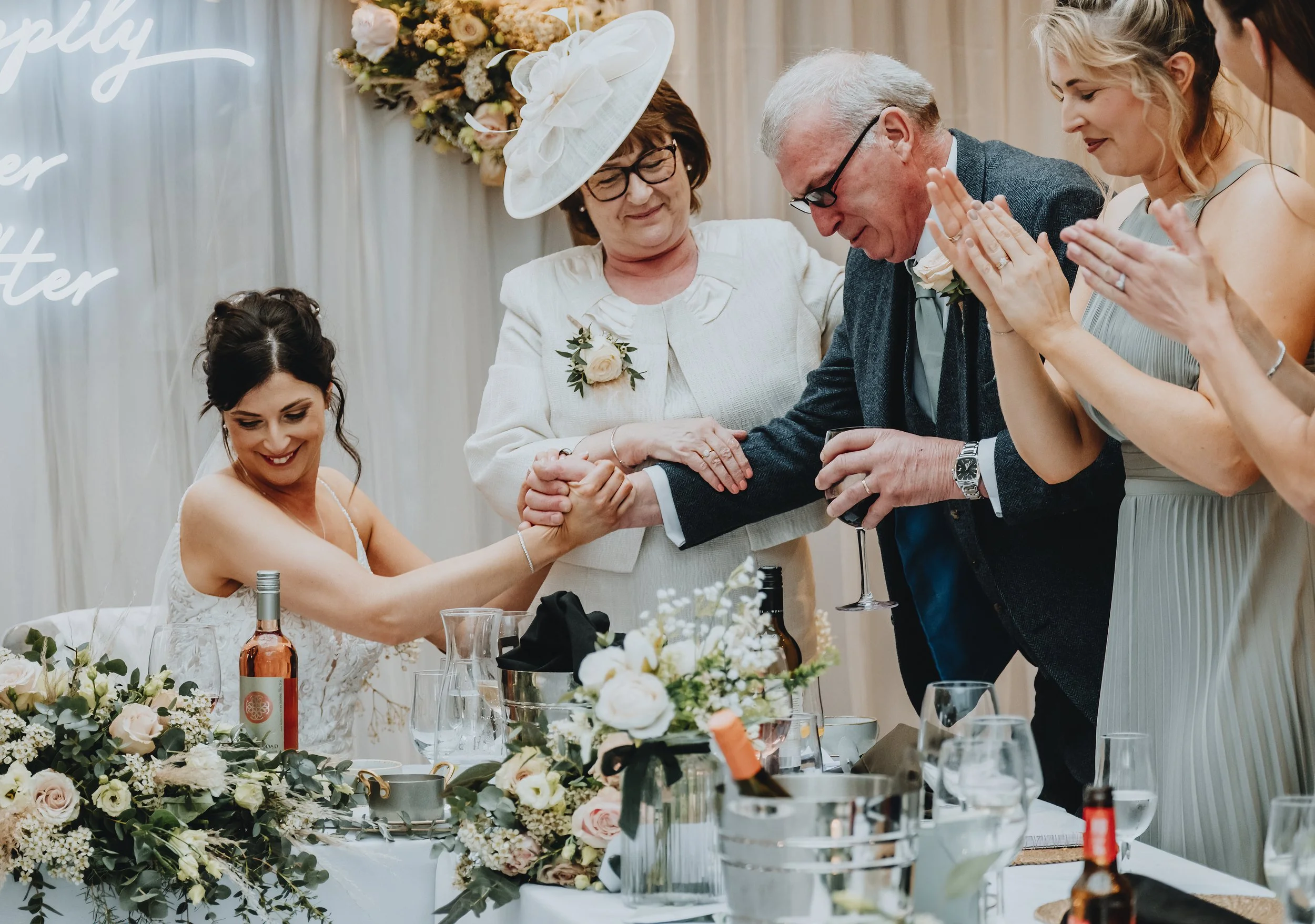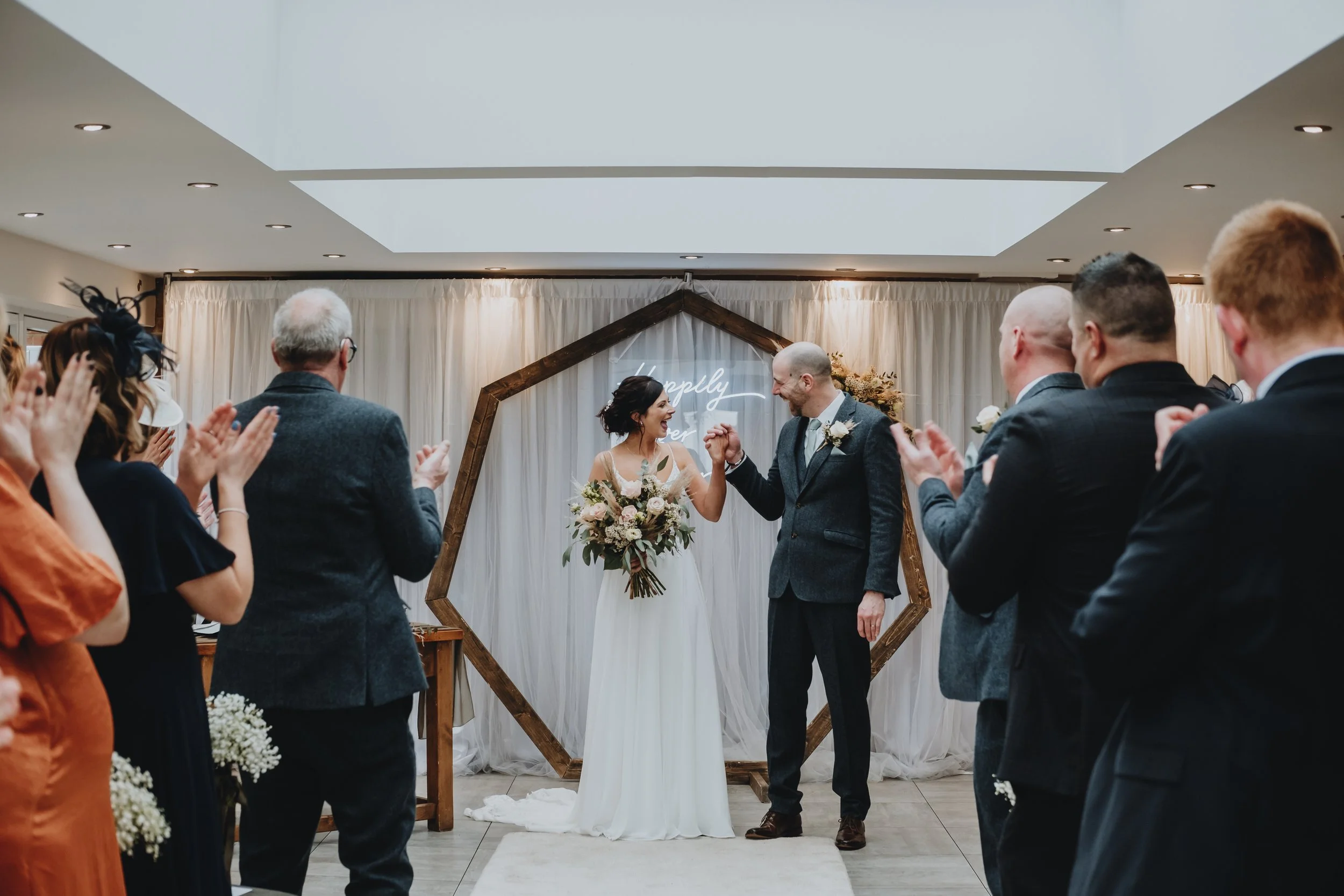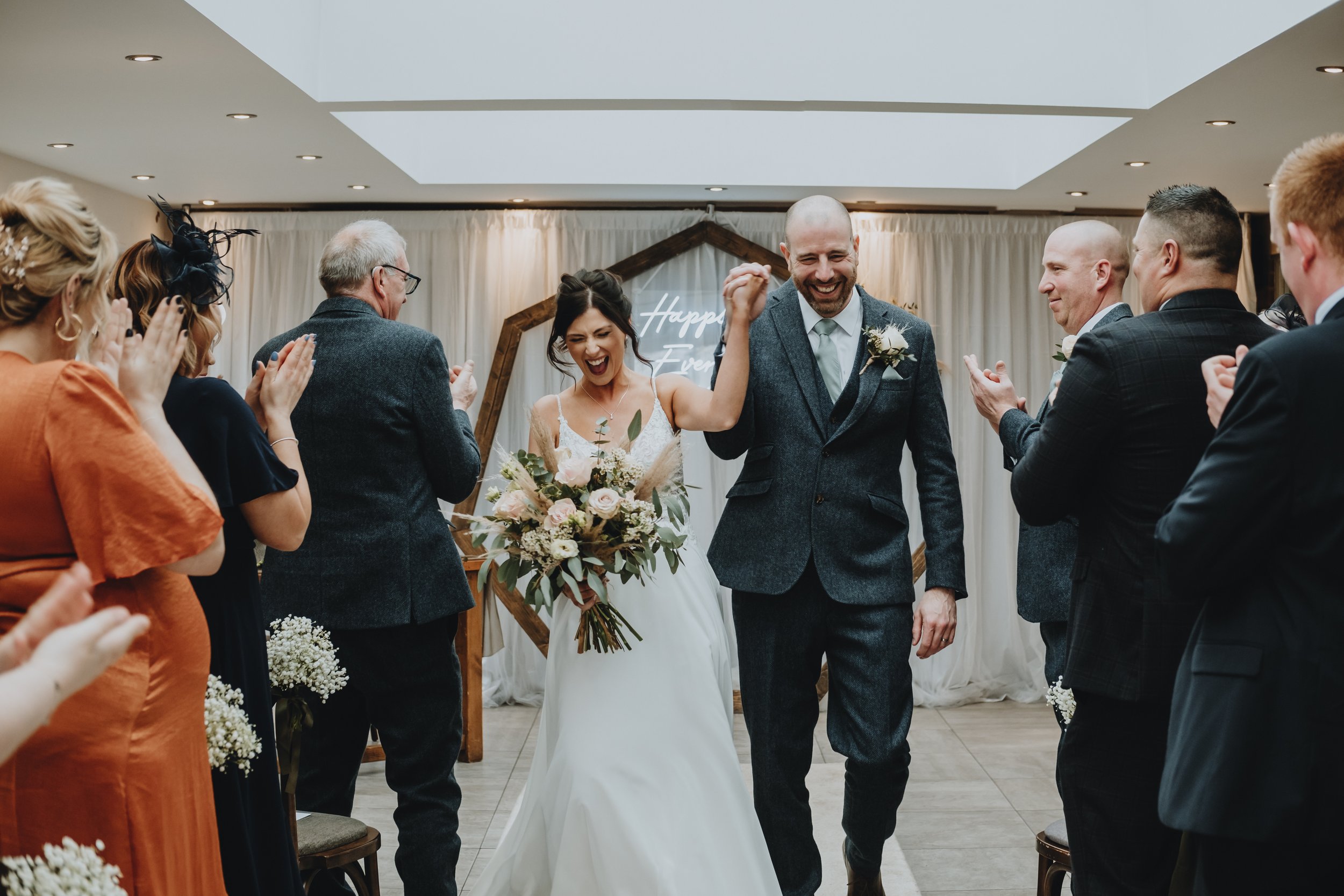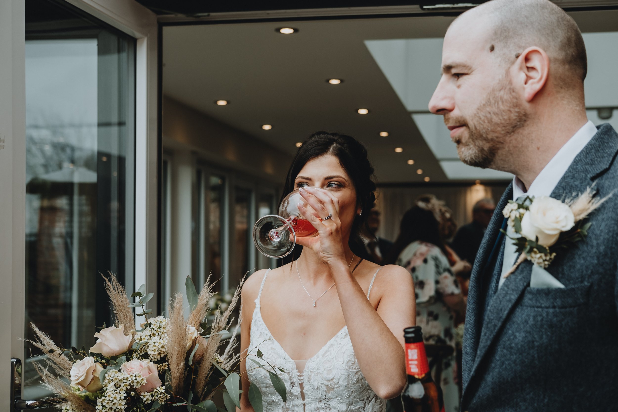 The ceremony itself was a true reflection of Hannah and Ross—warm, personal, and full of laughter. Surrounded by their closest family and friends, they exchanged heartfelt vows that brought both smiles and happy tears. The room was filled with a wonderful atmosphere, setting the tone for the rest of the day’s celebrations. As Hannah and Ross walked down the aisle as husband and wife, their just married drinks were waiting for them which I think Hannah was grateful for.