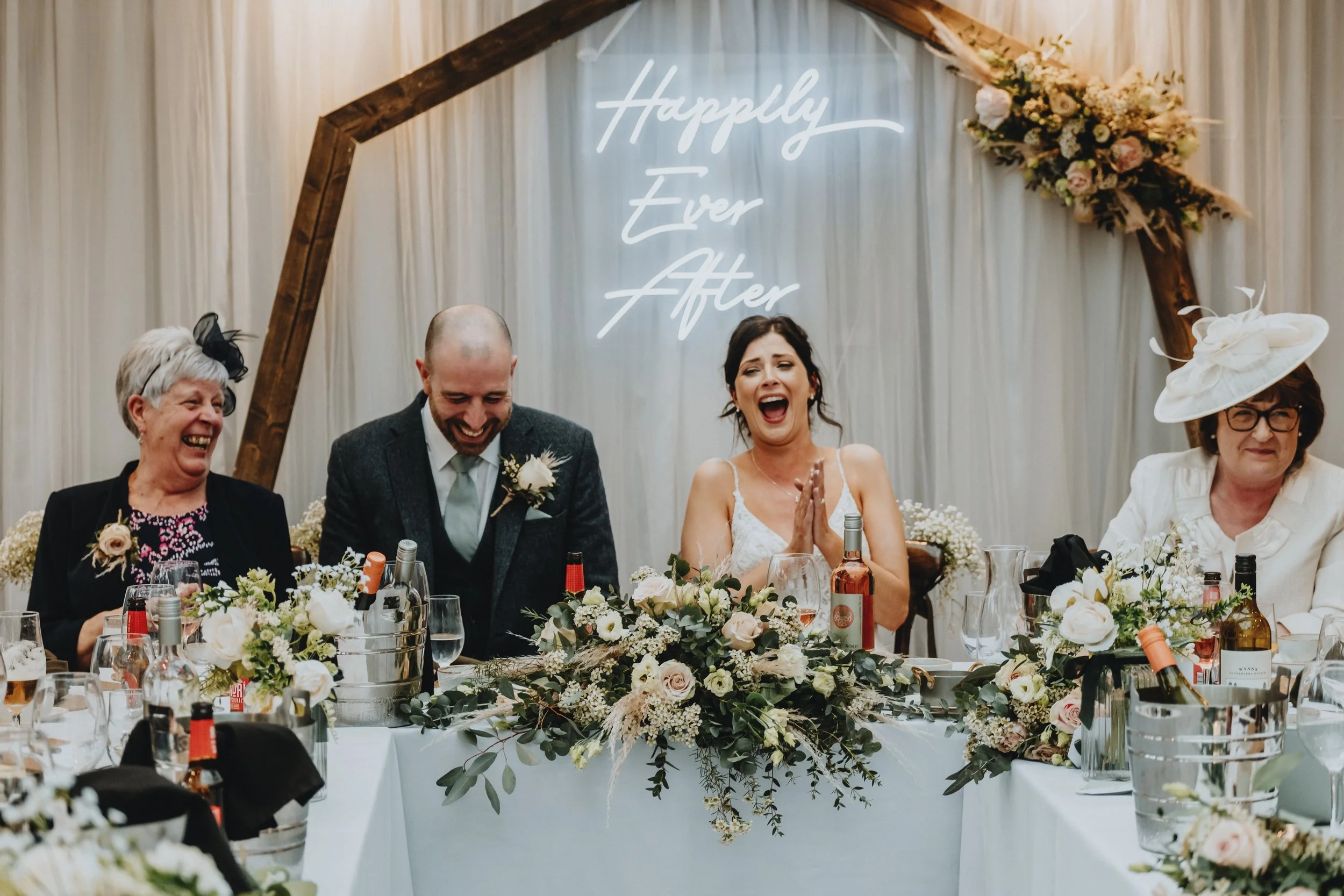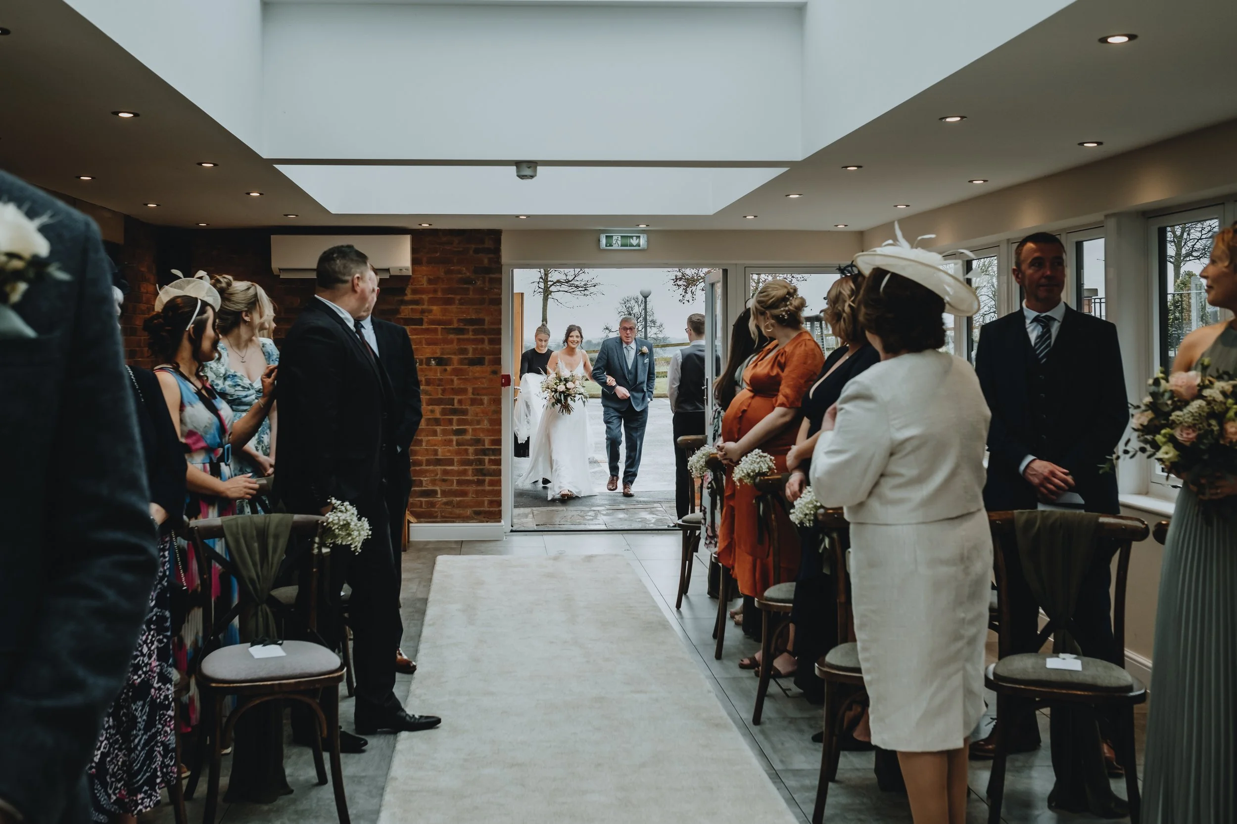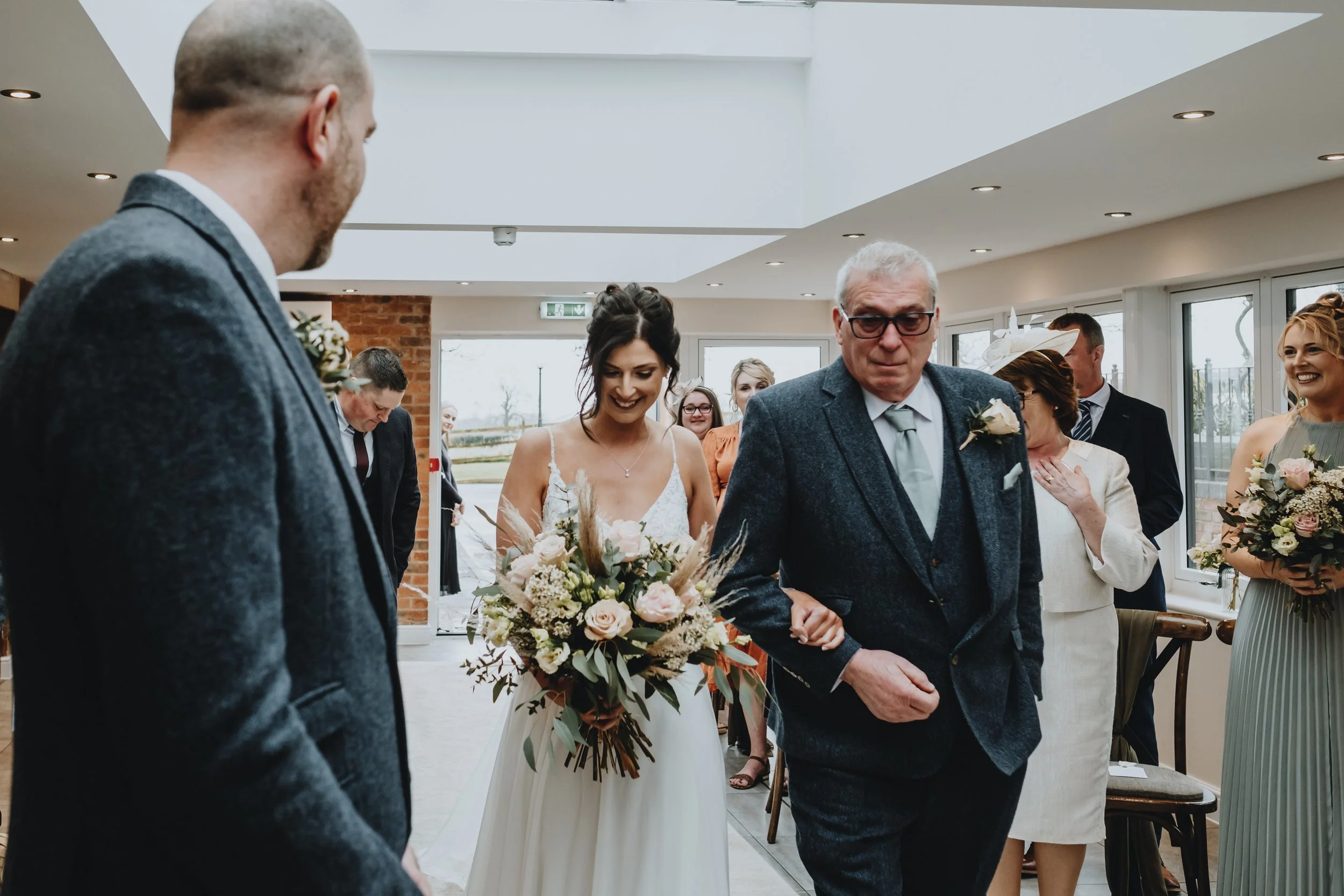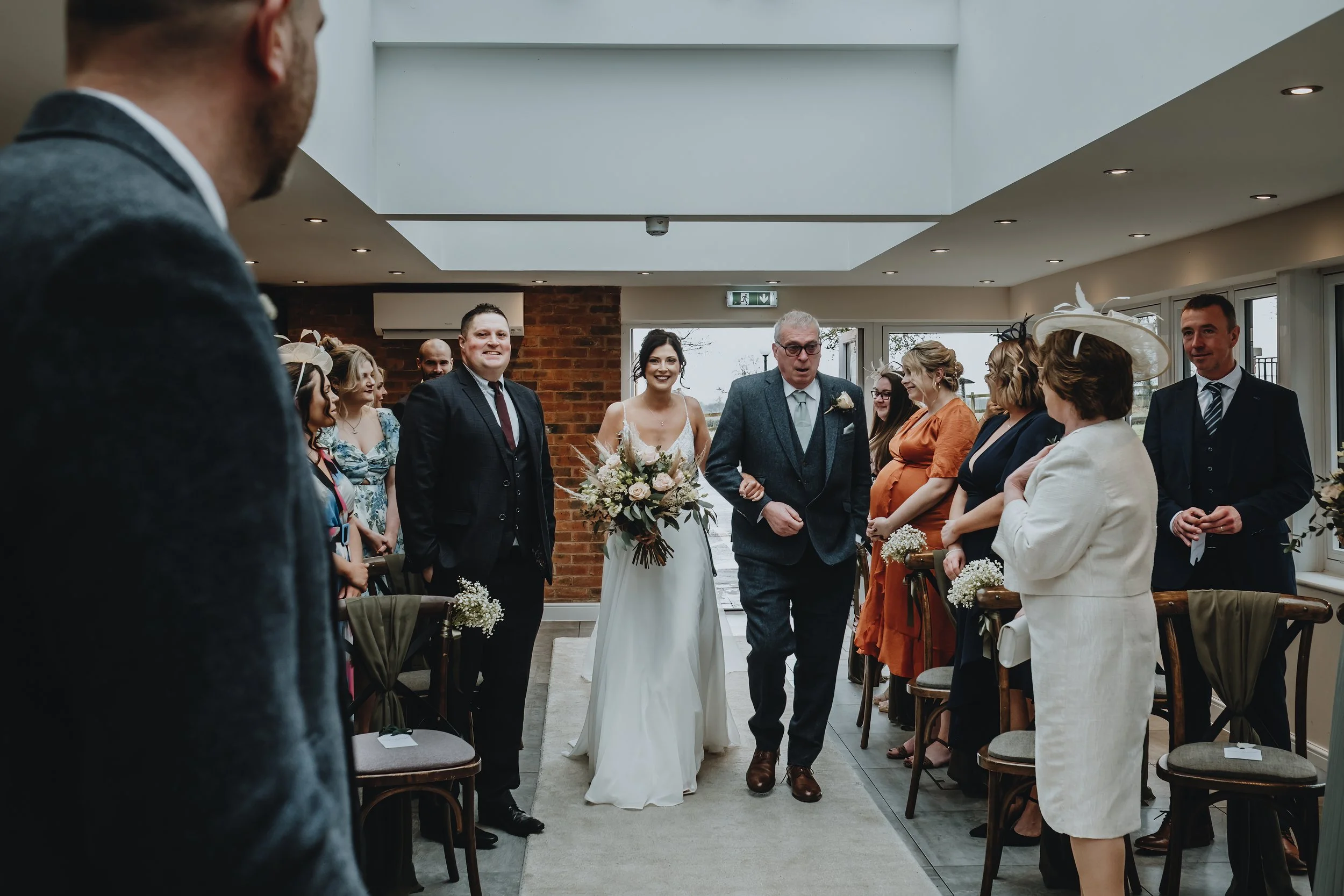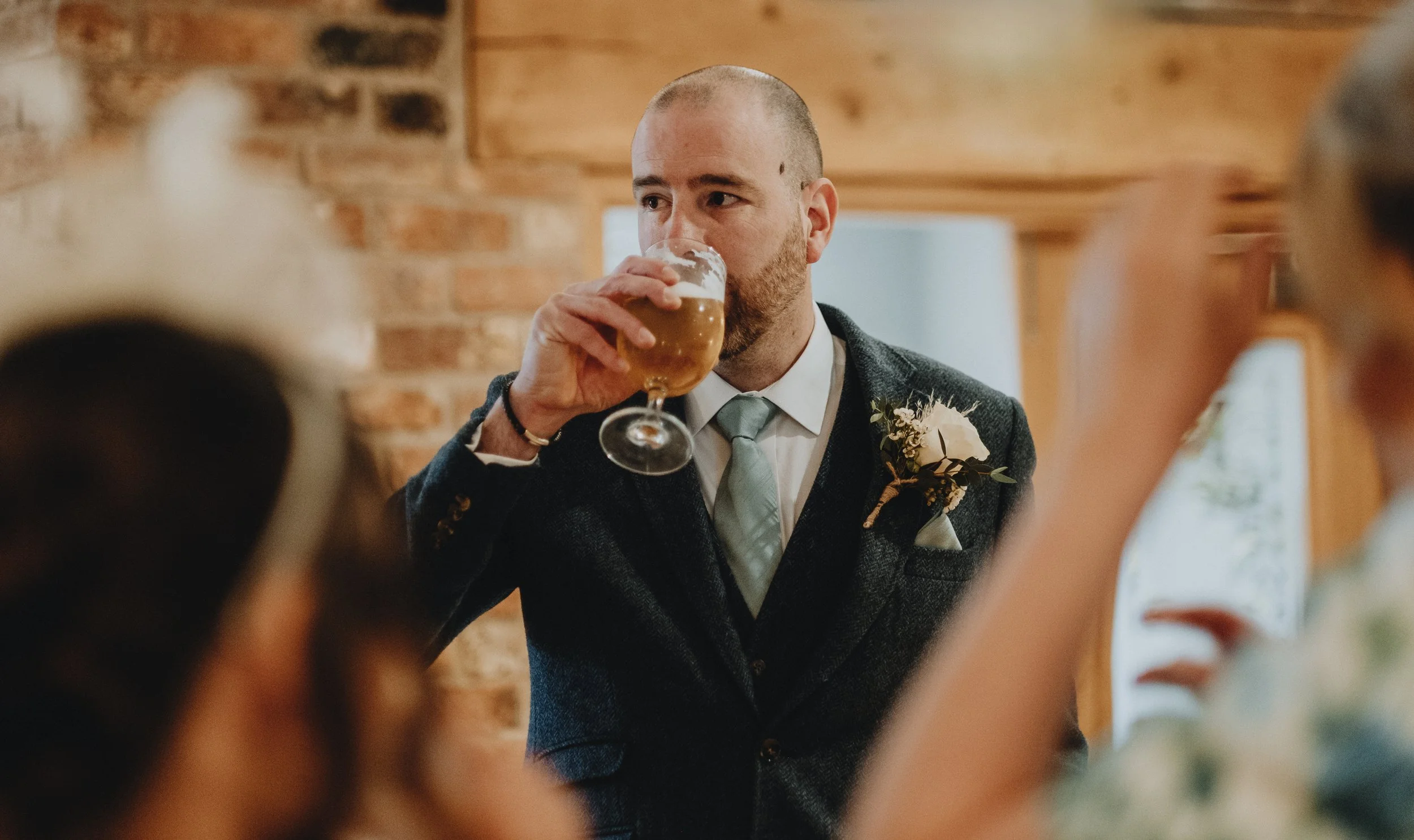 The ceremony itself was a true reflection of Hannah and Ross—warm, personal, and full of laughter. Surrounded by their closest family and friends, they exchanged heartfelt vows that brought both smiles and happy tears. The room was filled with a wonderful atmosphere, setting the tone for the rest of the day’s celebrations. As Hannah and Ross walked down the aisle as husband and wife, their just married drinks were waiting for them which I think Hannah was grateful for.