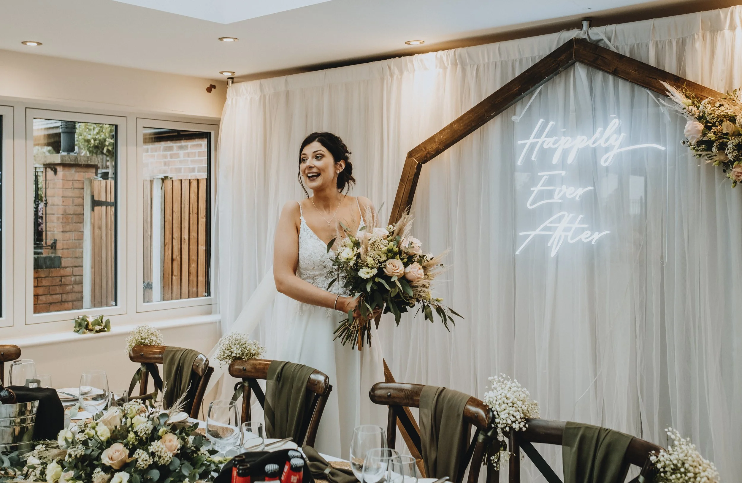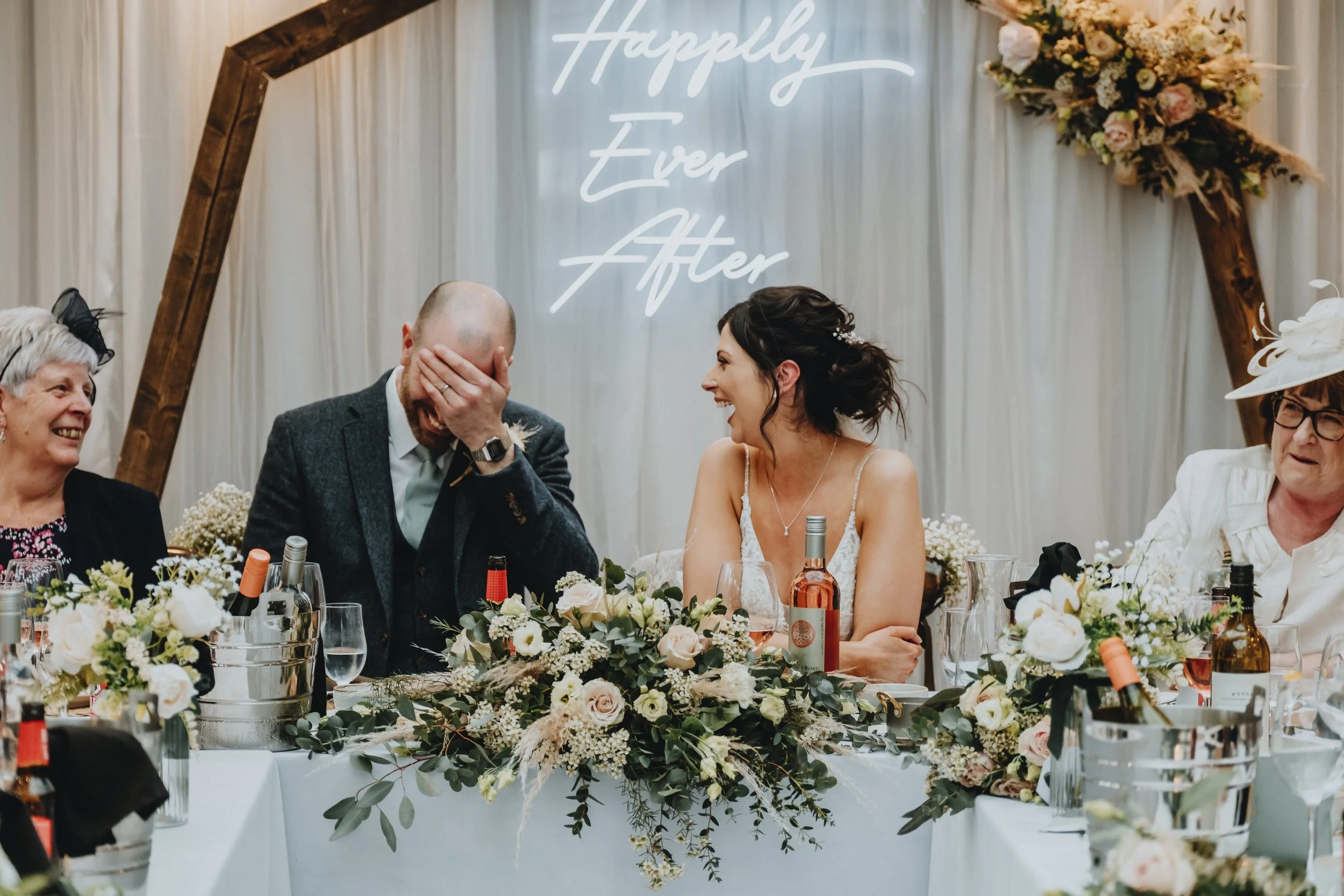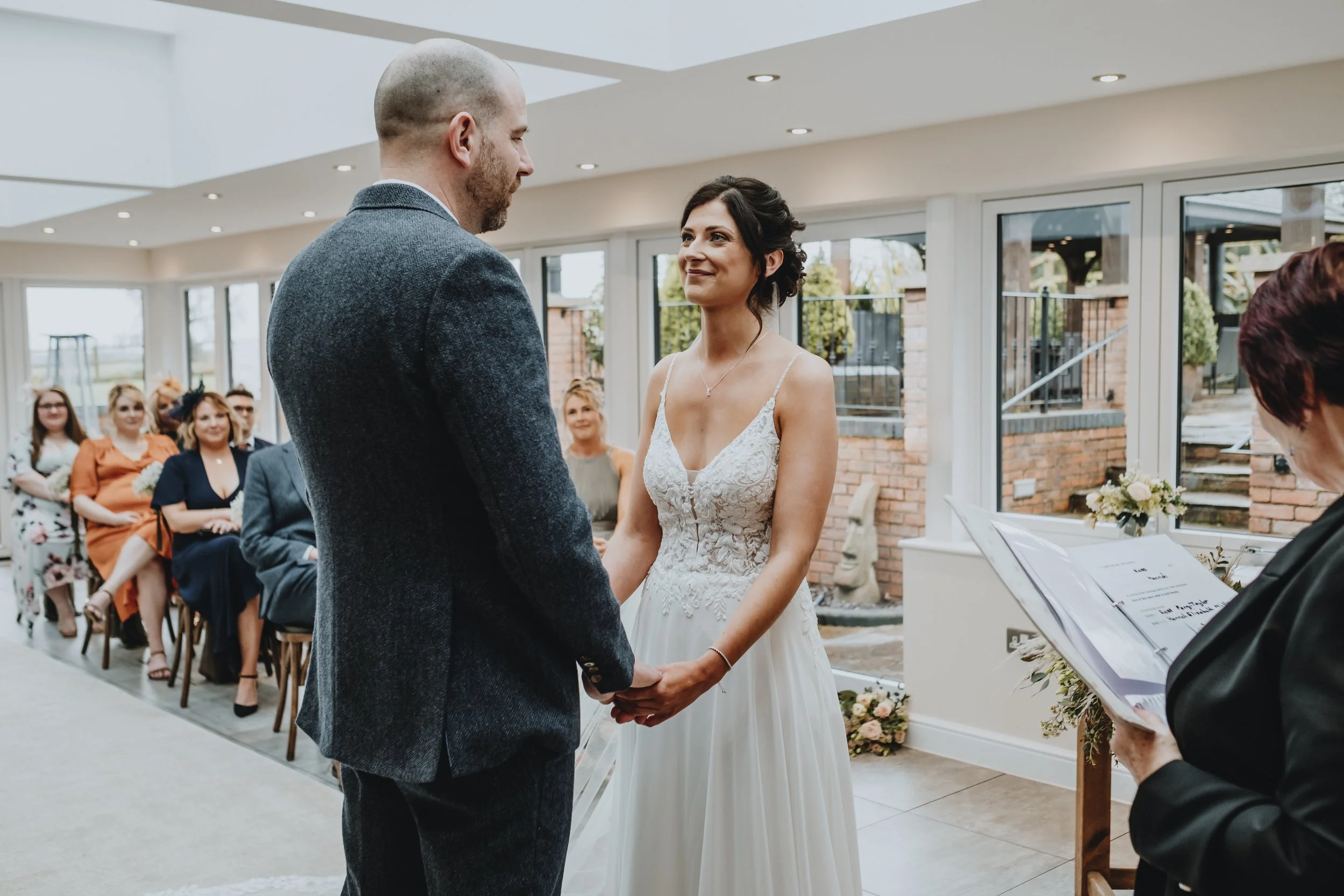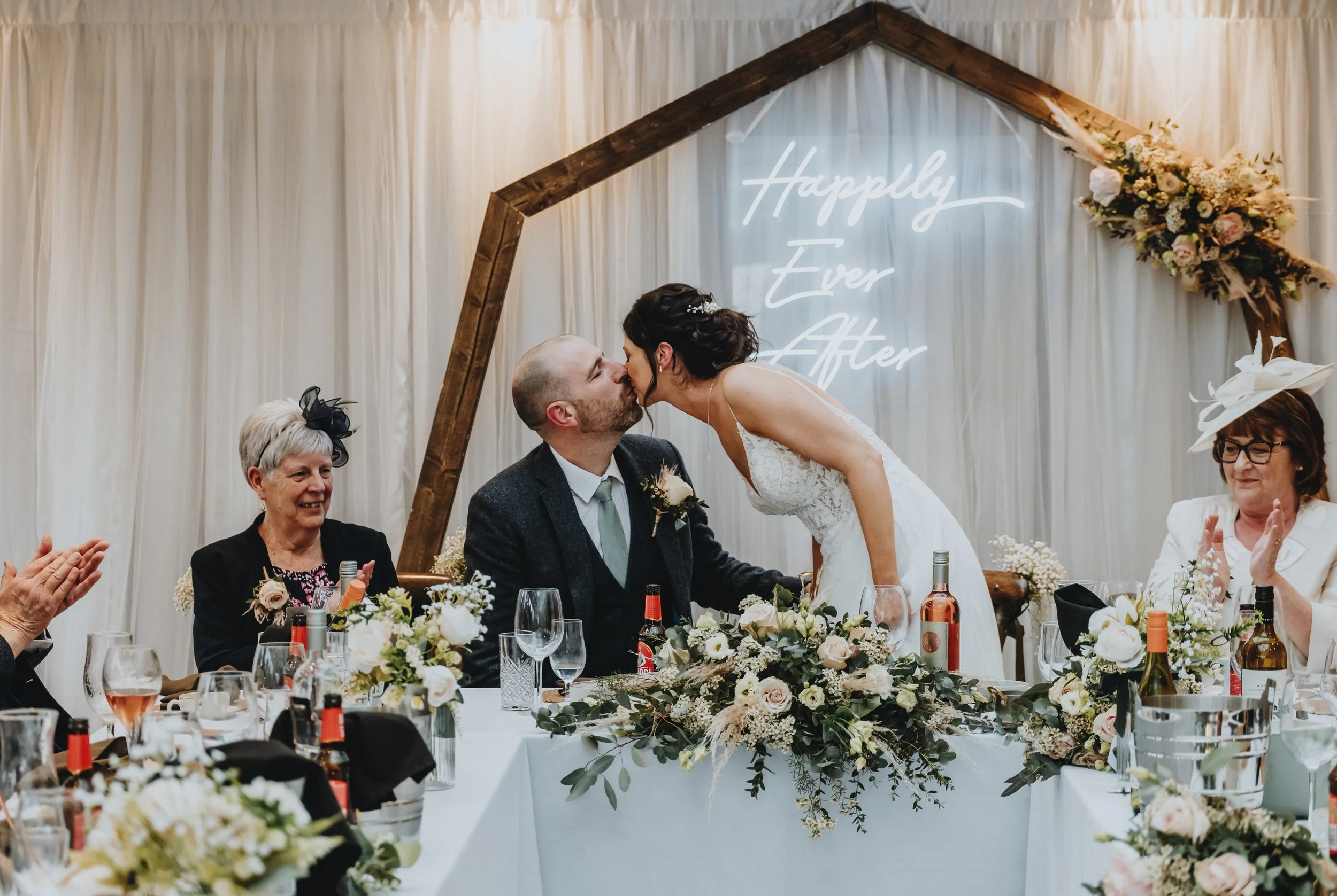 The ceremony itself was a true reflection of Hannah and Ross—warm, personal, and full of laughter. Surrounded by their closest family and friends, they exchanged heartfelt vows that brought both smiles and happy tears. The room was filled with a wonderful atmosphere, setting the tone for the rest of the day’s celebrations. As Hannah and Ross walked down the aisle as husband and wife, their just married drinks were waiting for them which I think Hannah was grateful for.