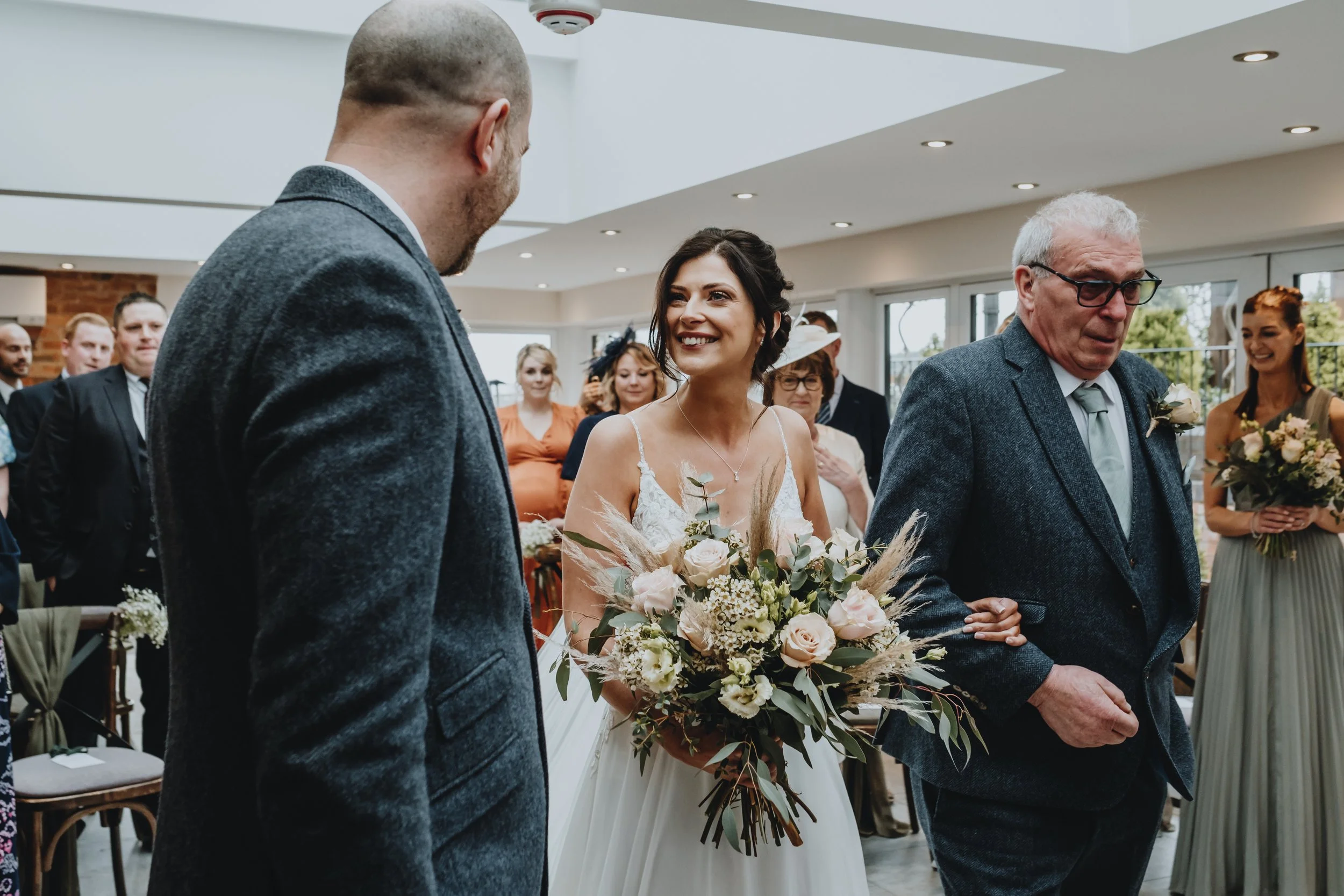 The White Hart Inn at Moorwood Moor is a beautiful Derbyshire wedding venue with stylish interiors and welcoming staff, making it perfect for both intimate gatherings and larger celebrations. Even with the rain, the venue provided a warm, elegant setting for Hannah and Ross’ day.