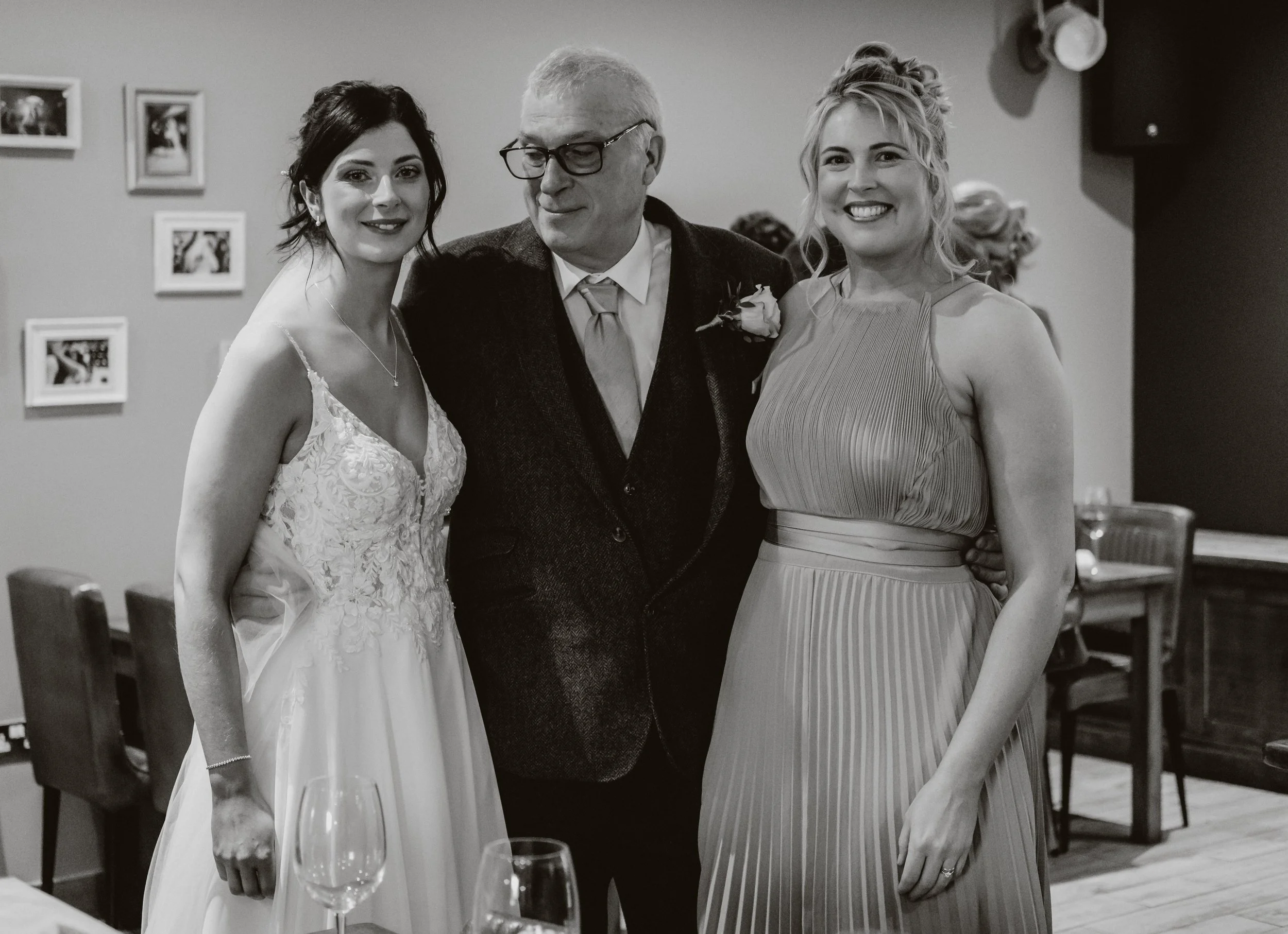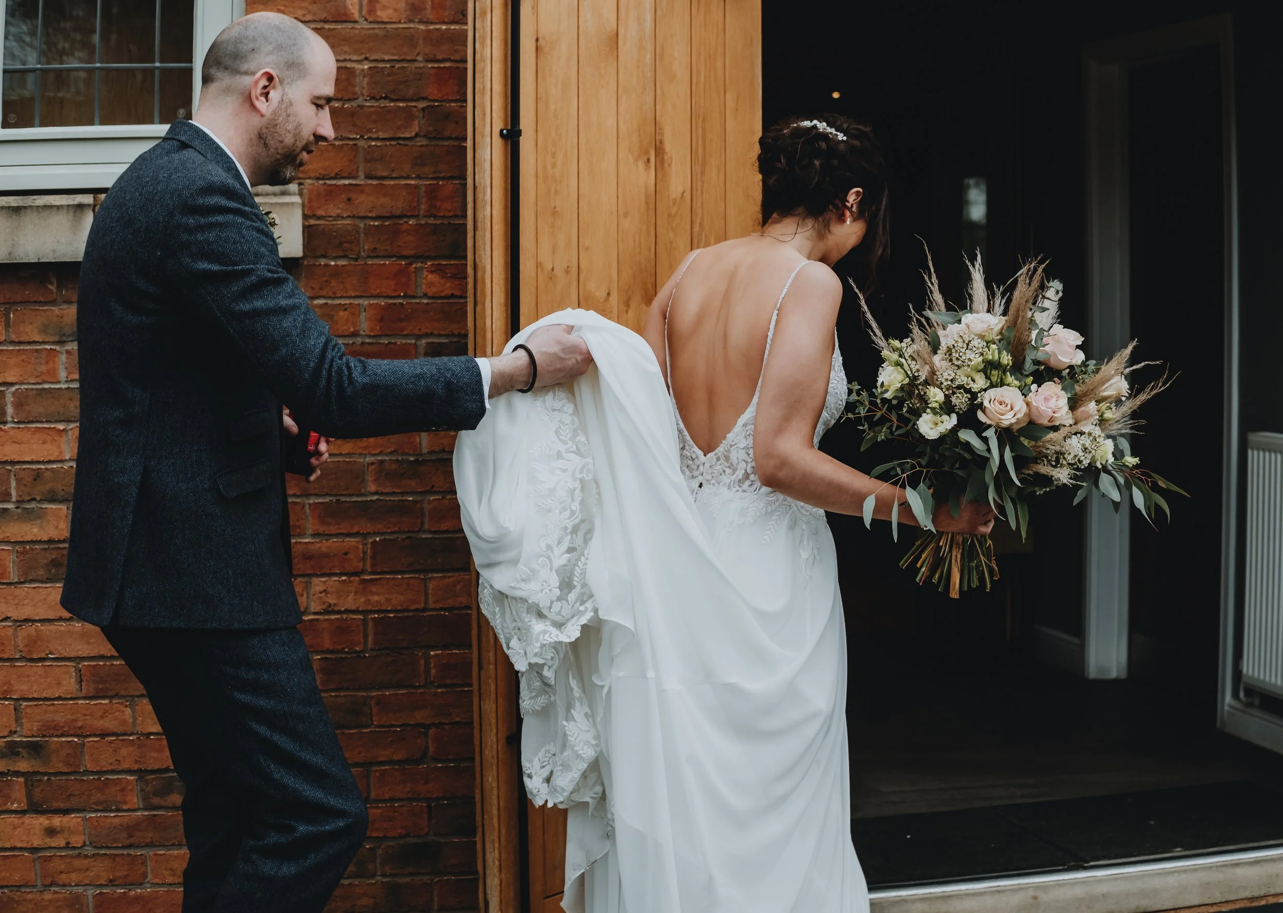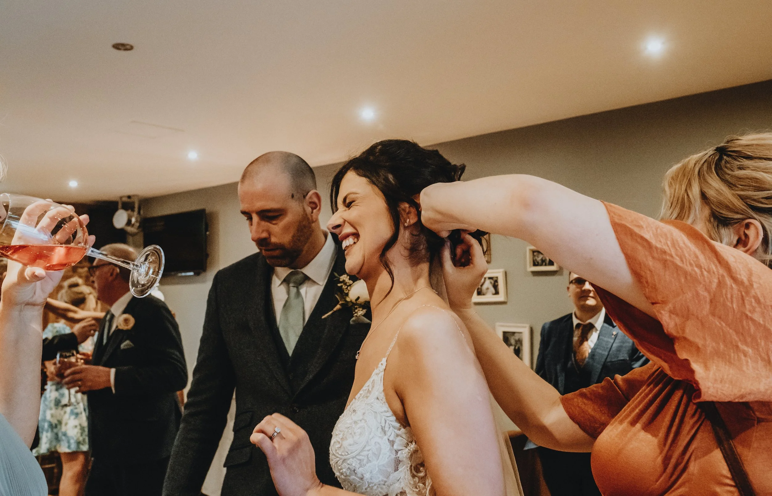 My coverage began at Hannah and Ross’ home, where Hannah and her bridal party were getting ready. The atmosphere was full of excitement, and once Hannah was in her dress, I made my way to the White Hart to meet Ross and photograph guests arriving.