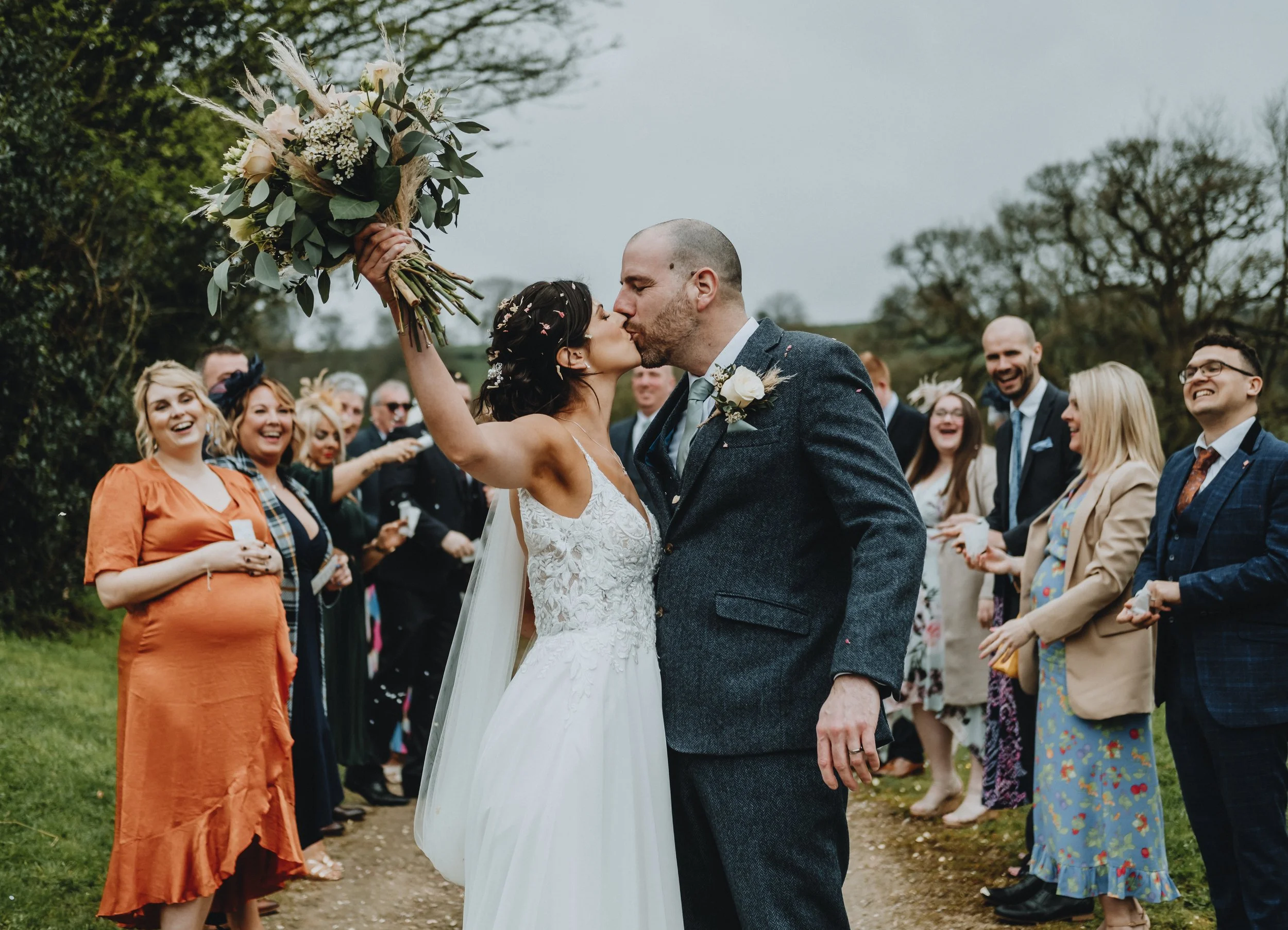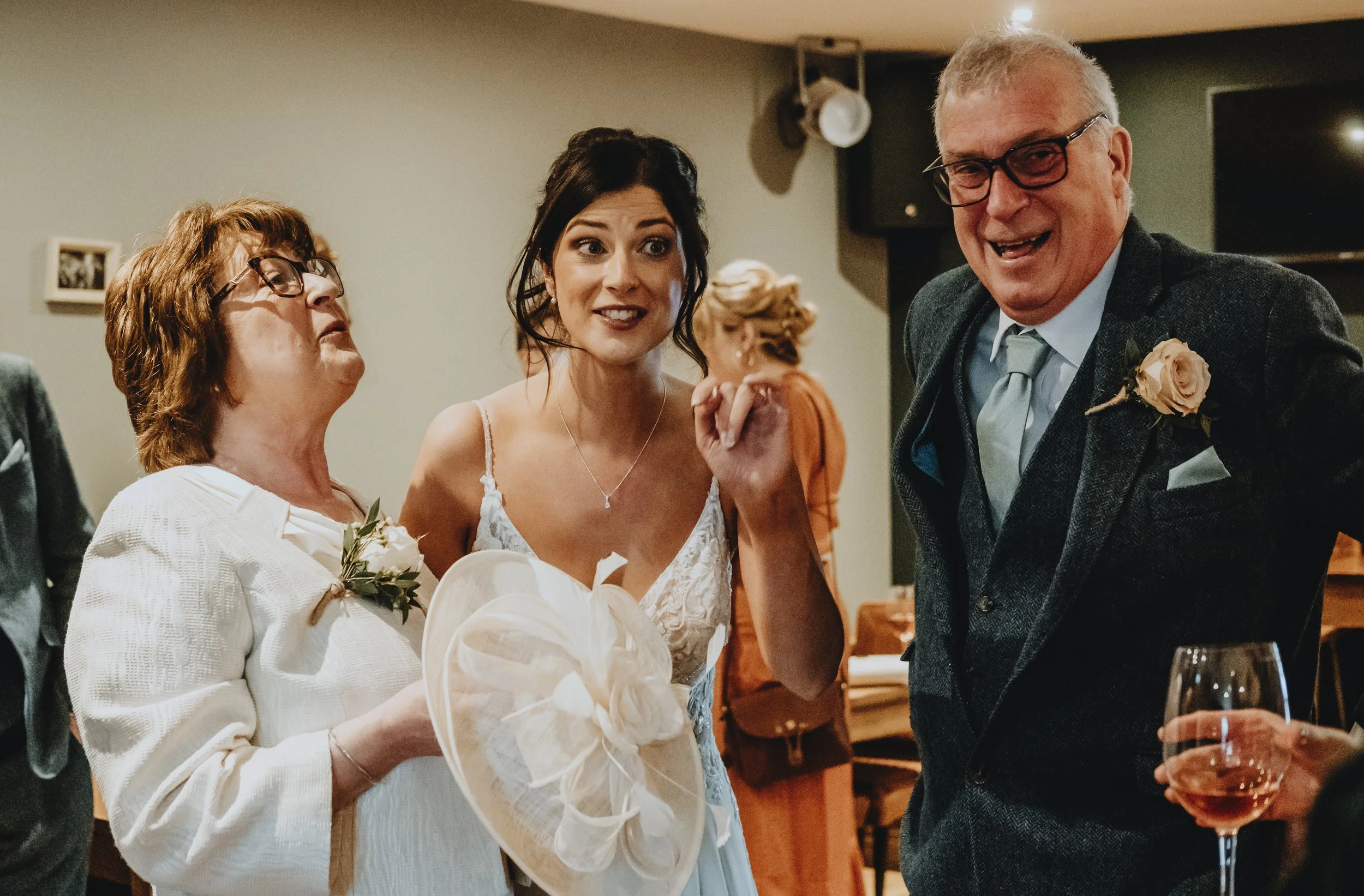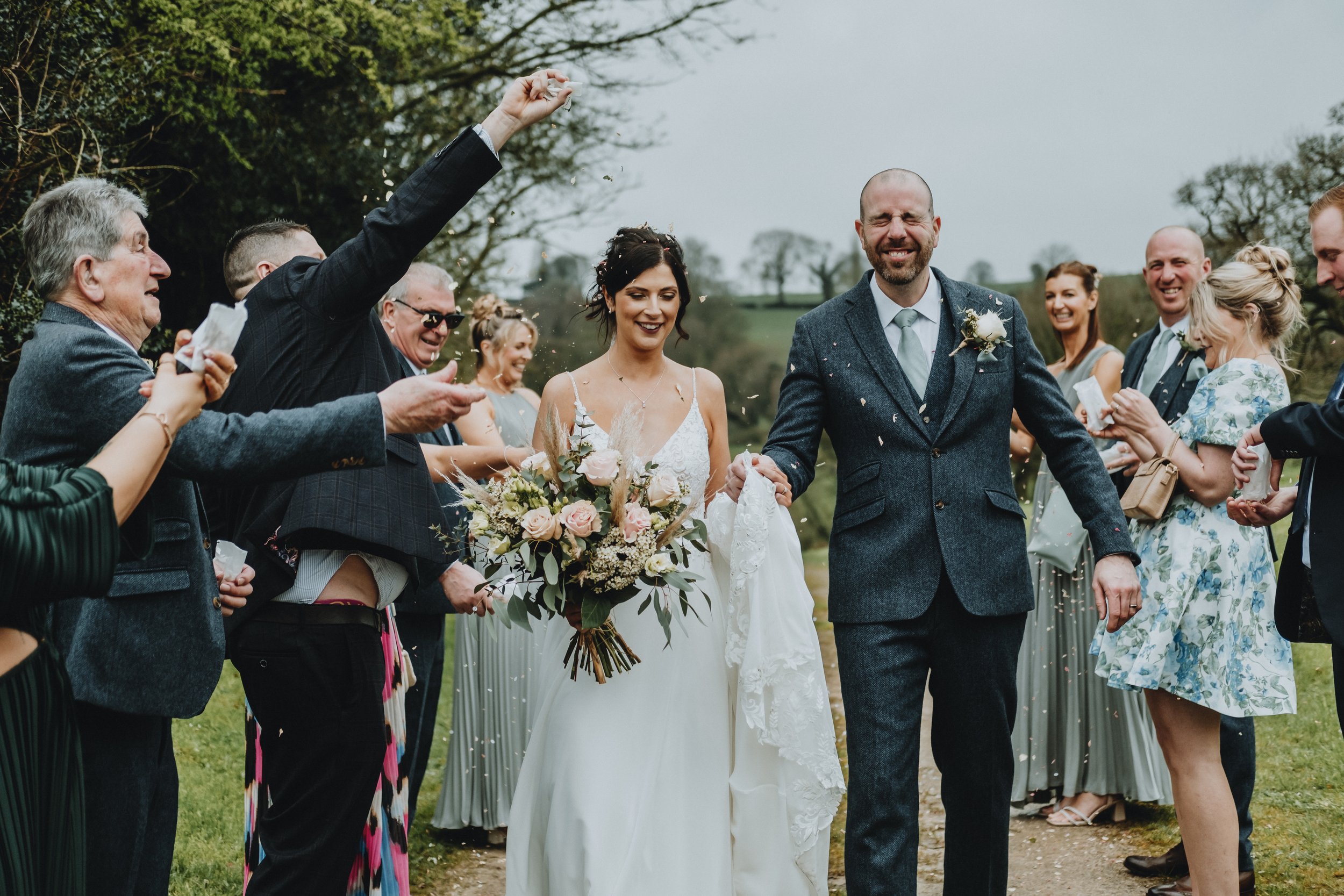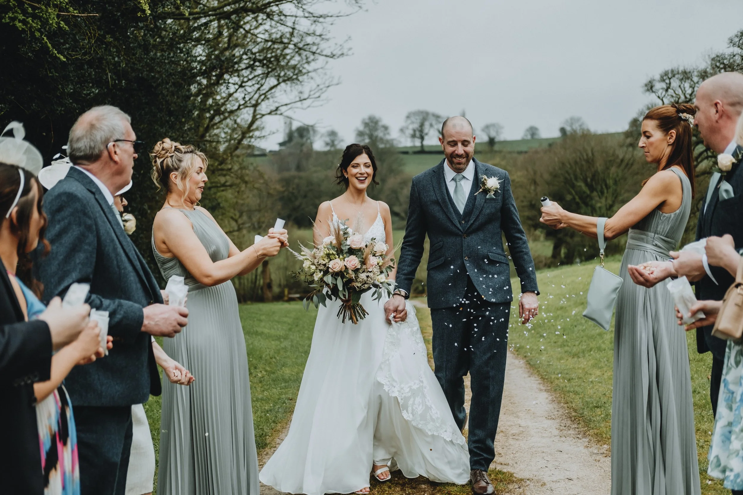 Just before the rain began, we were able to enjoy outdoor confetti—a moment full of smiles and happy tears. We also managed to complete all the family portraits outside, making the most of the soft light before heading indoors for canapés and mingling. This was the perfect time for the bride and groom to greet their nearest and dearest, with more guests joining the celebration later in the day.