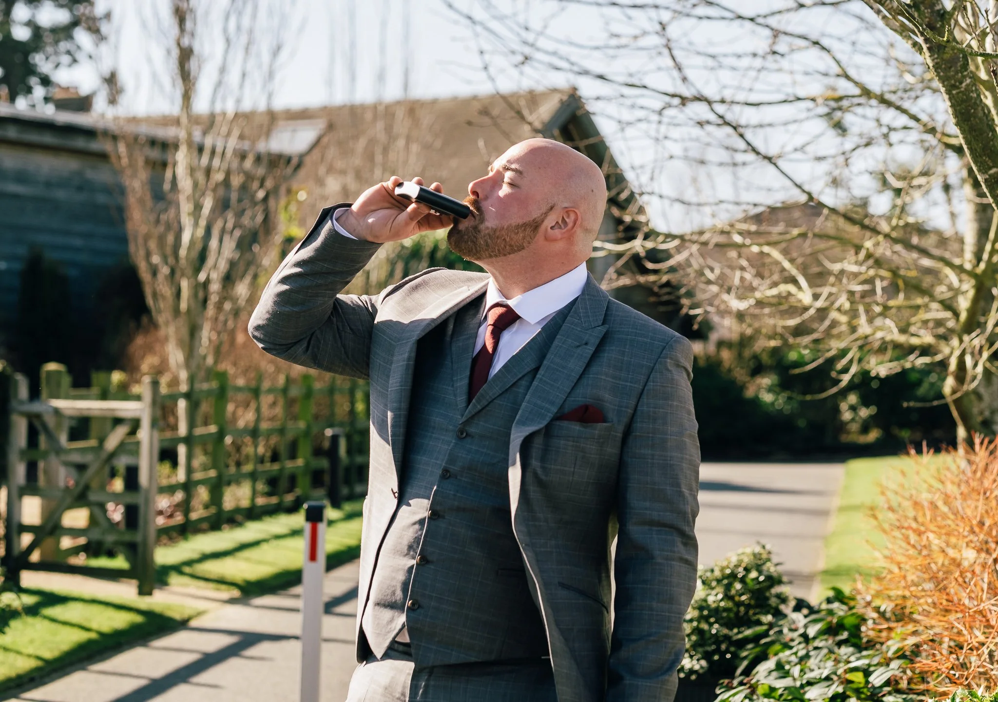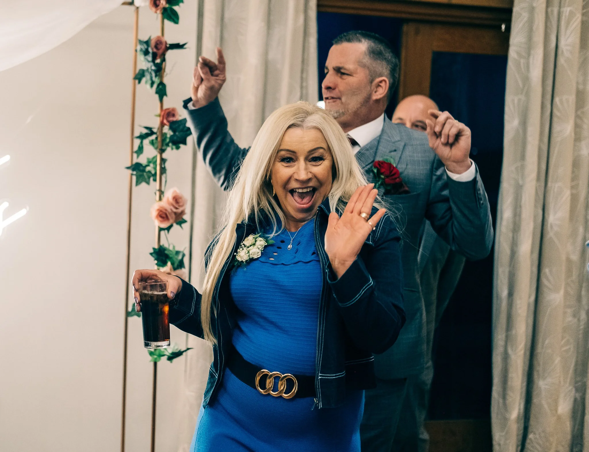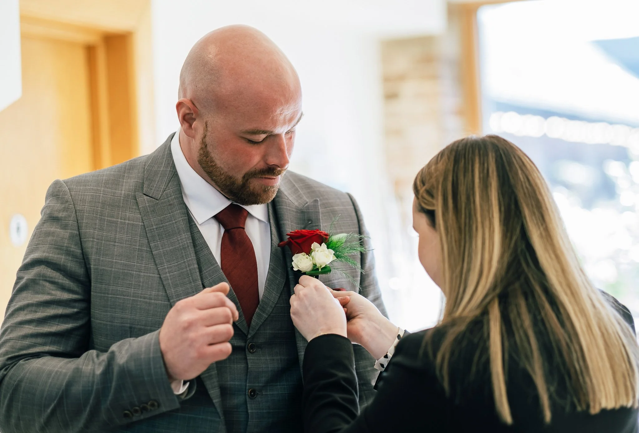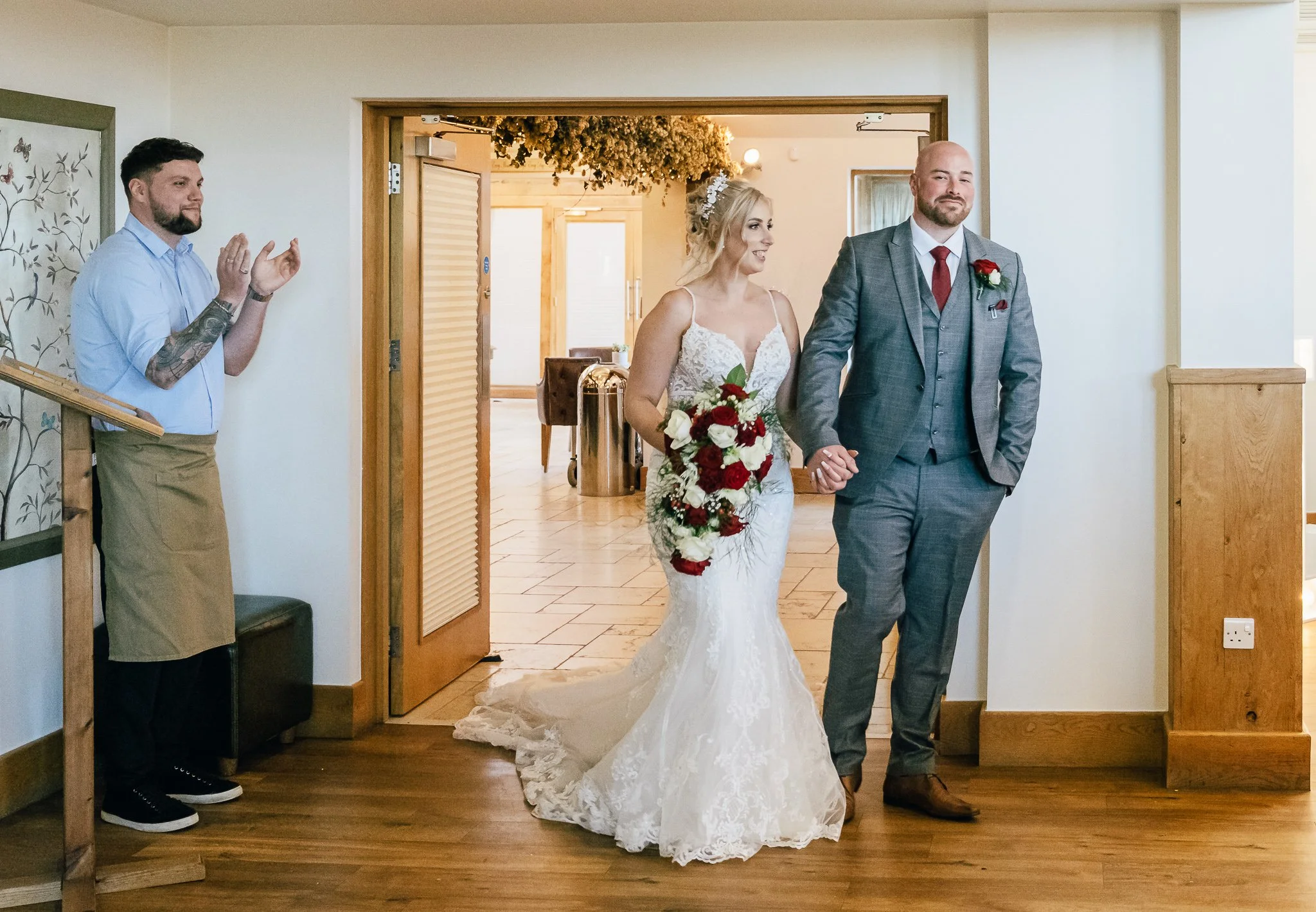 The day was brimming with joy and excitement, setting the perfect tone for a special celebration. One standout feature was the vibrant red Mustang in which the groom arrived in style, a striking contrast to the rustic barn and countryside scenery, immediately signalling a day full of personality.