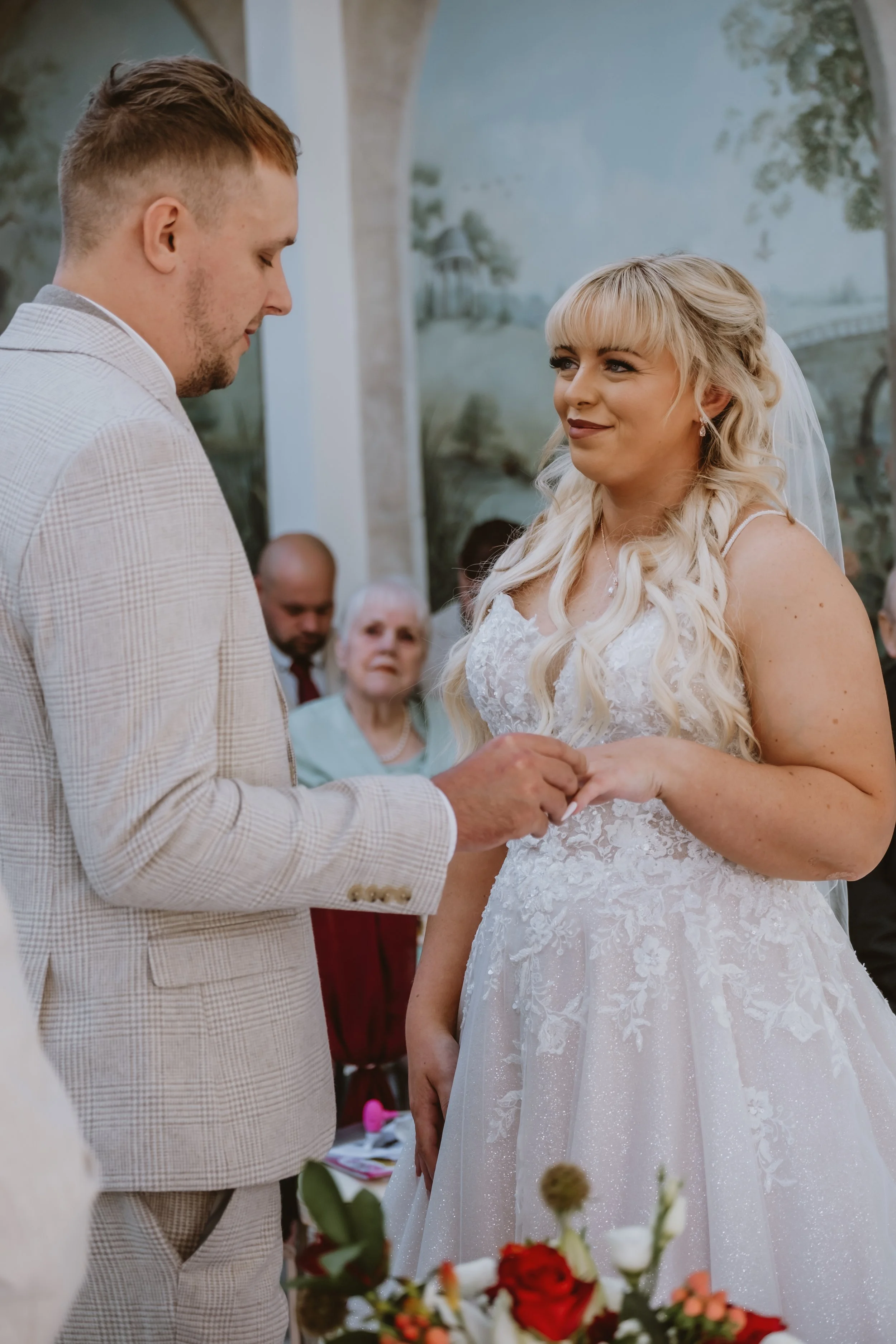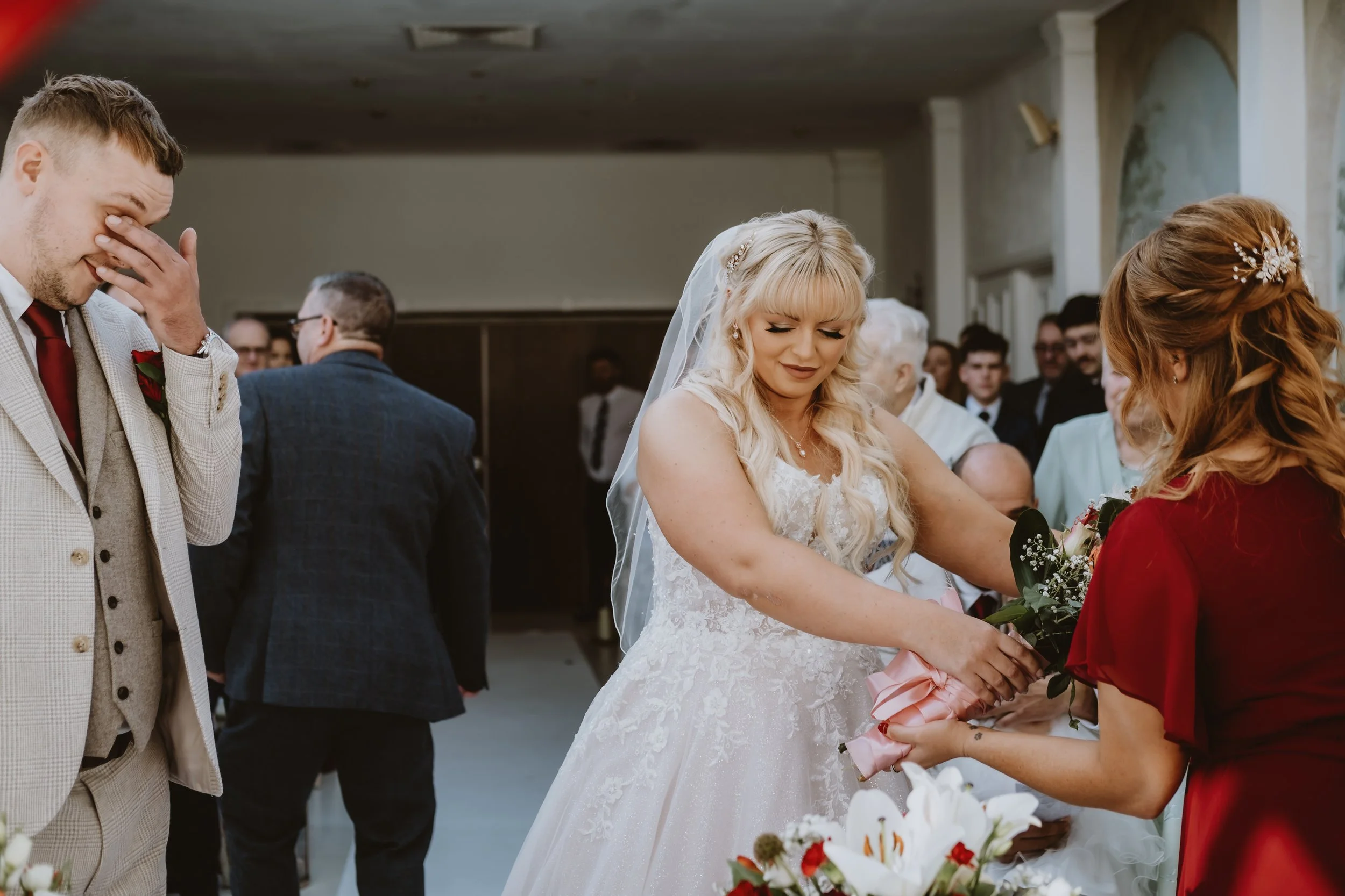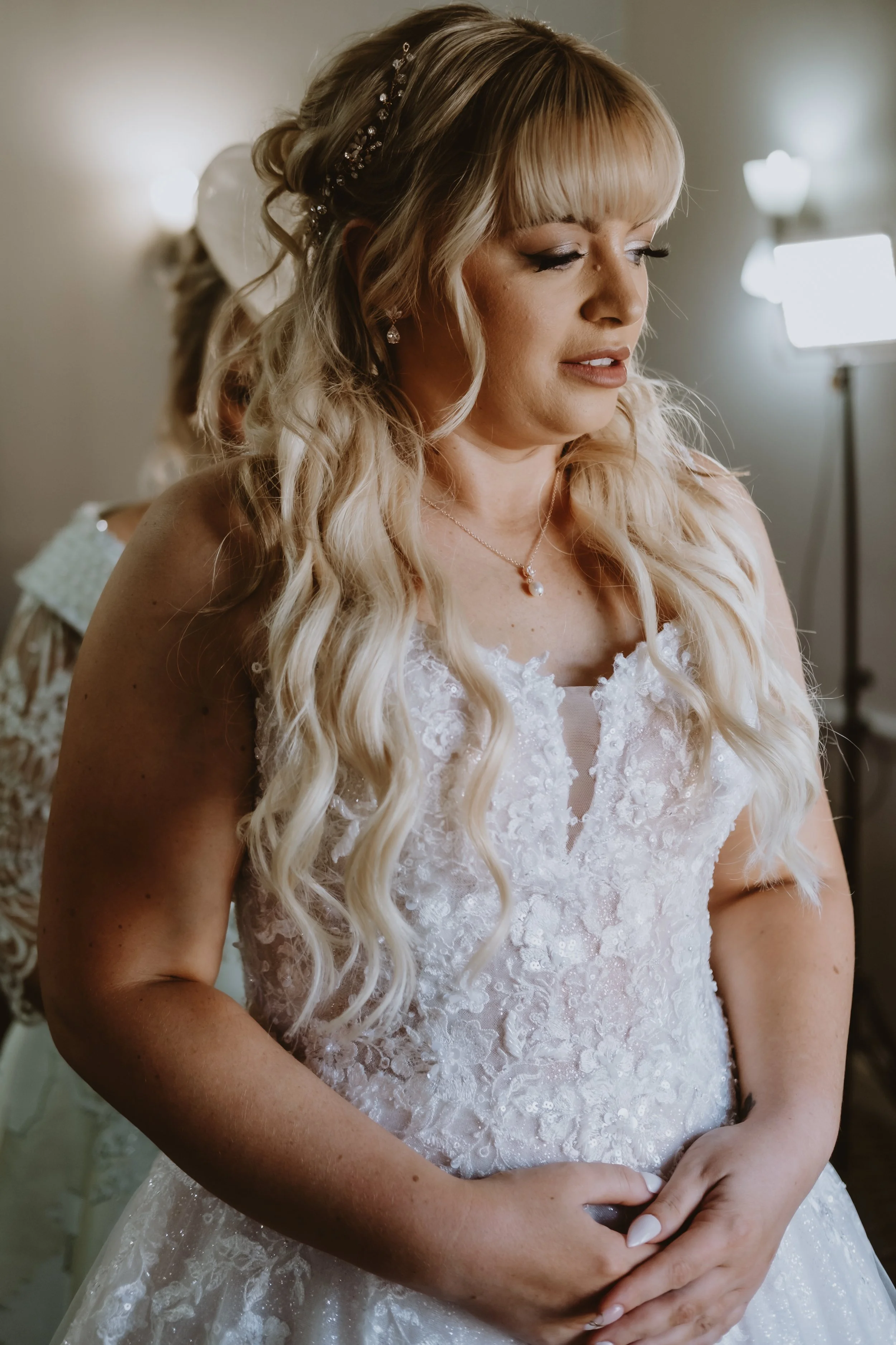 Her wedding dress was a stunning Maggie Sottero gown from Brides of Ashby, in a soft champagne tone with a delicate lace overlay. It suited Charlotte perfectly and she looked absolutely incredible.