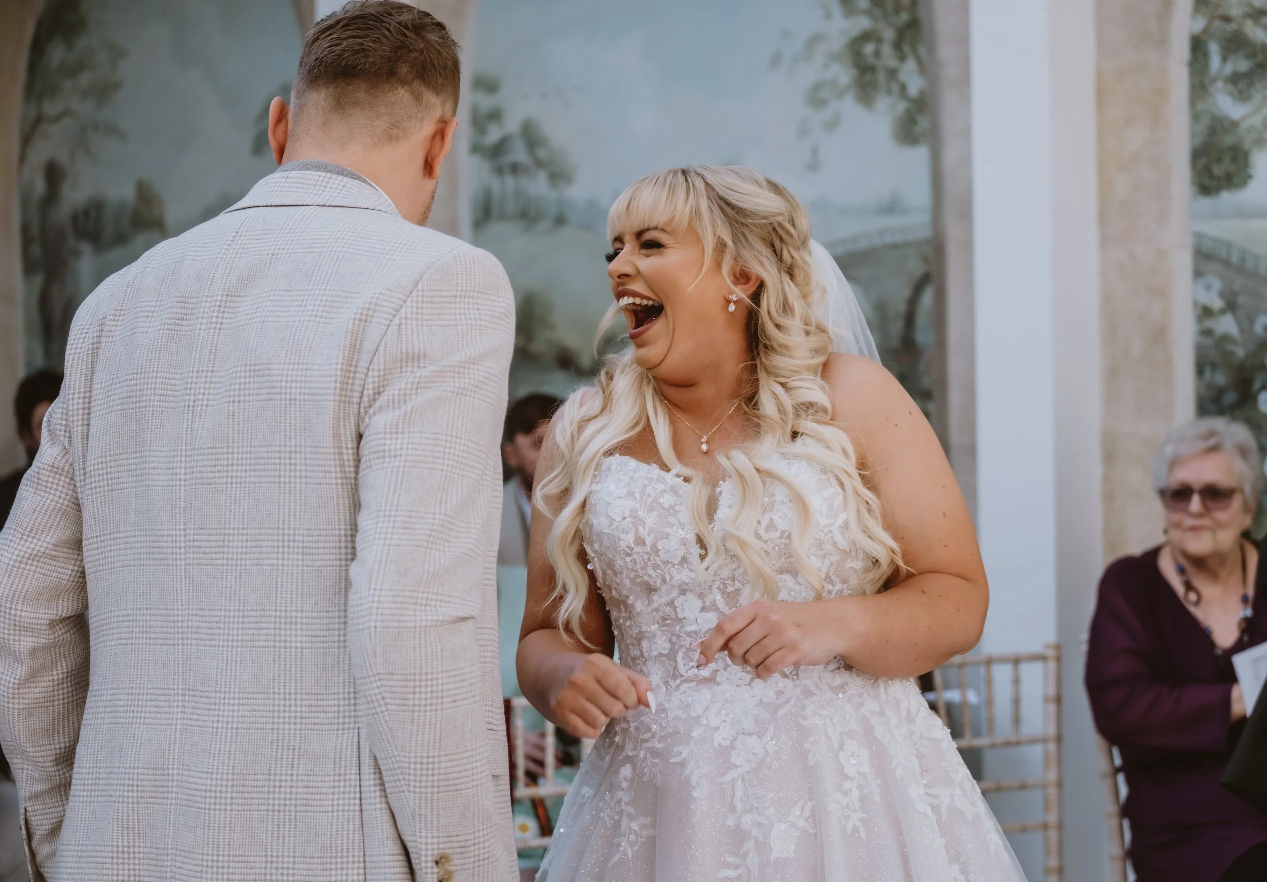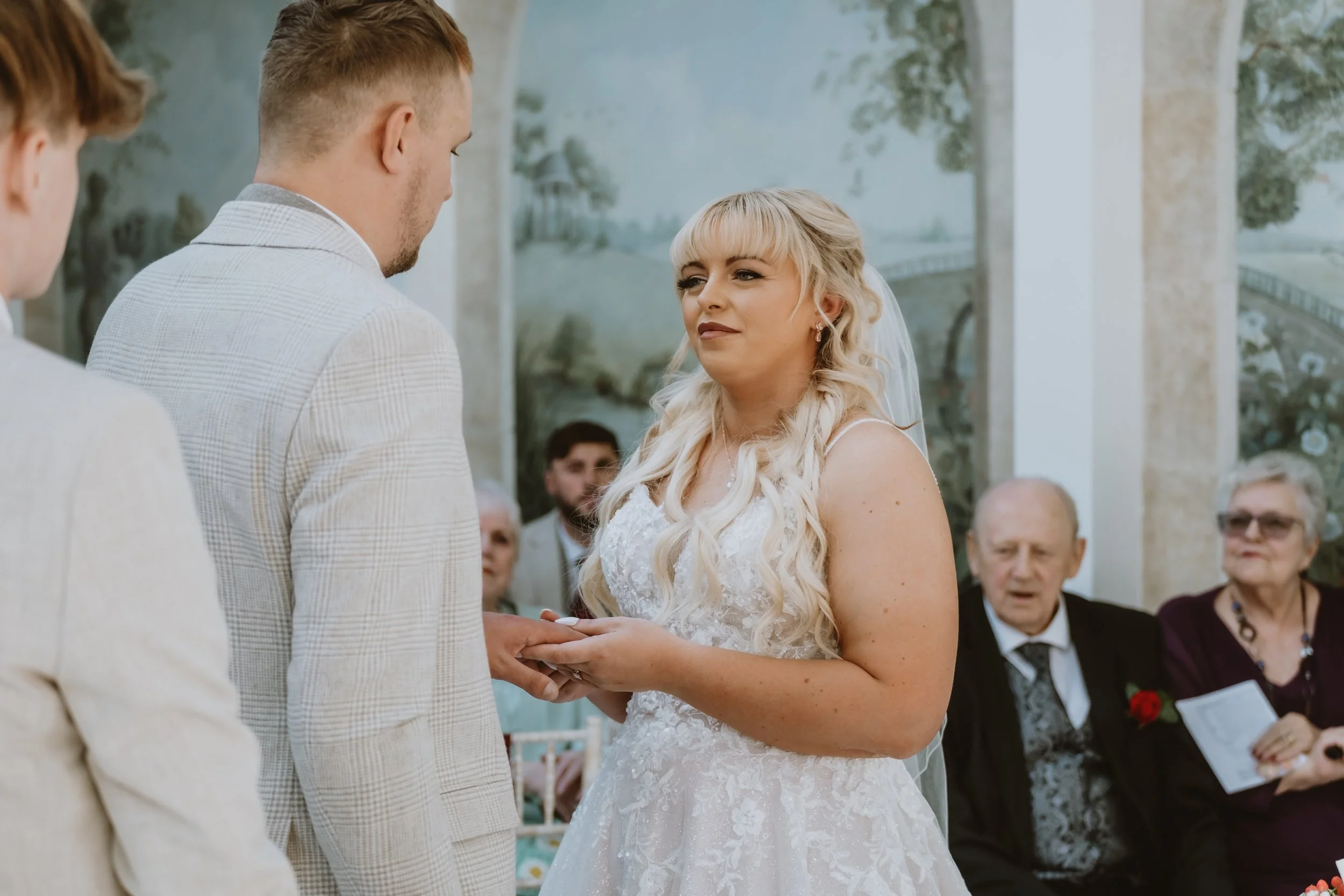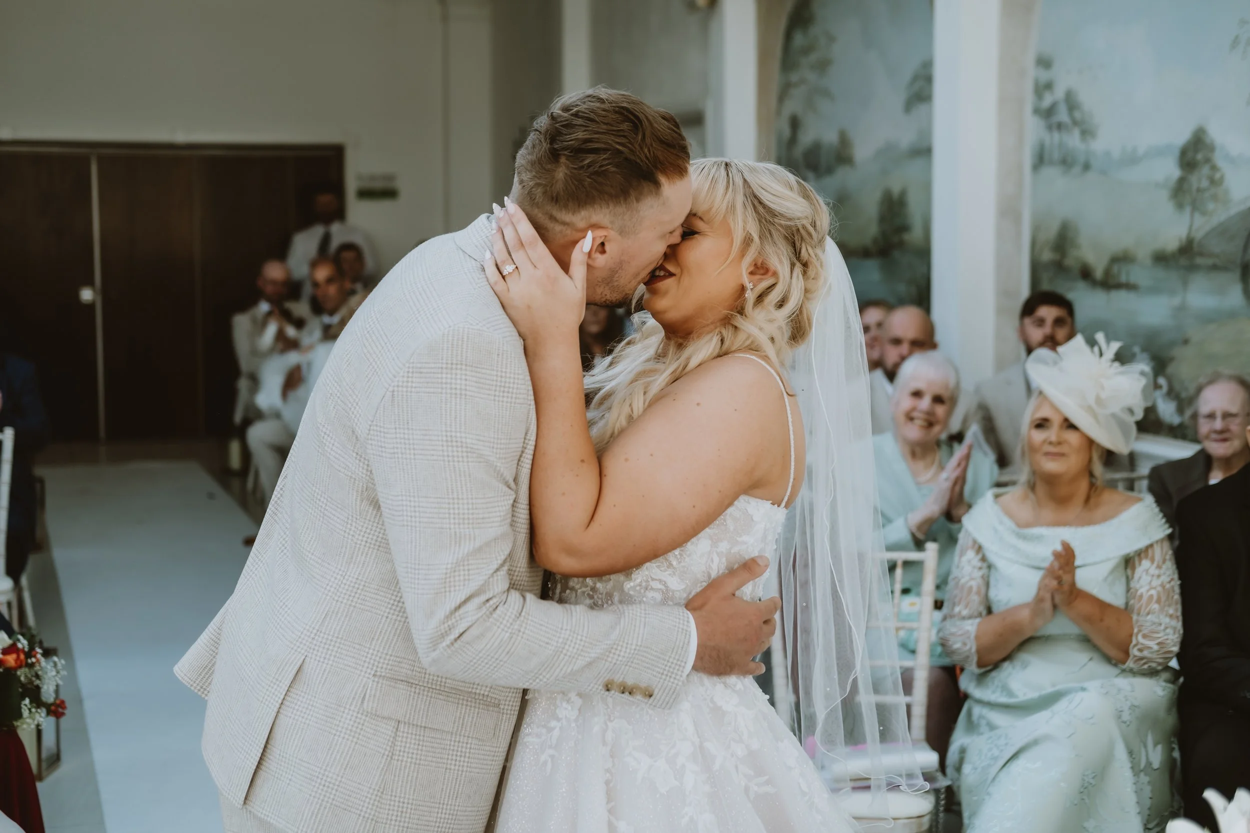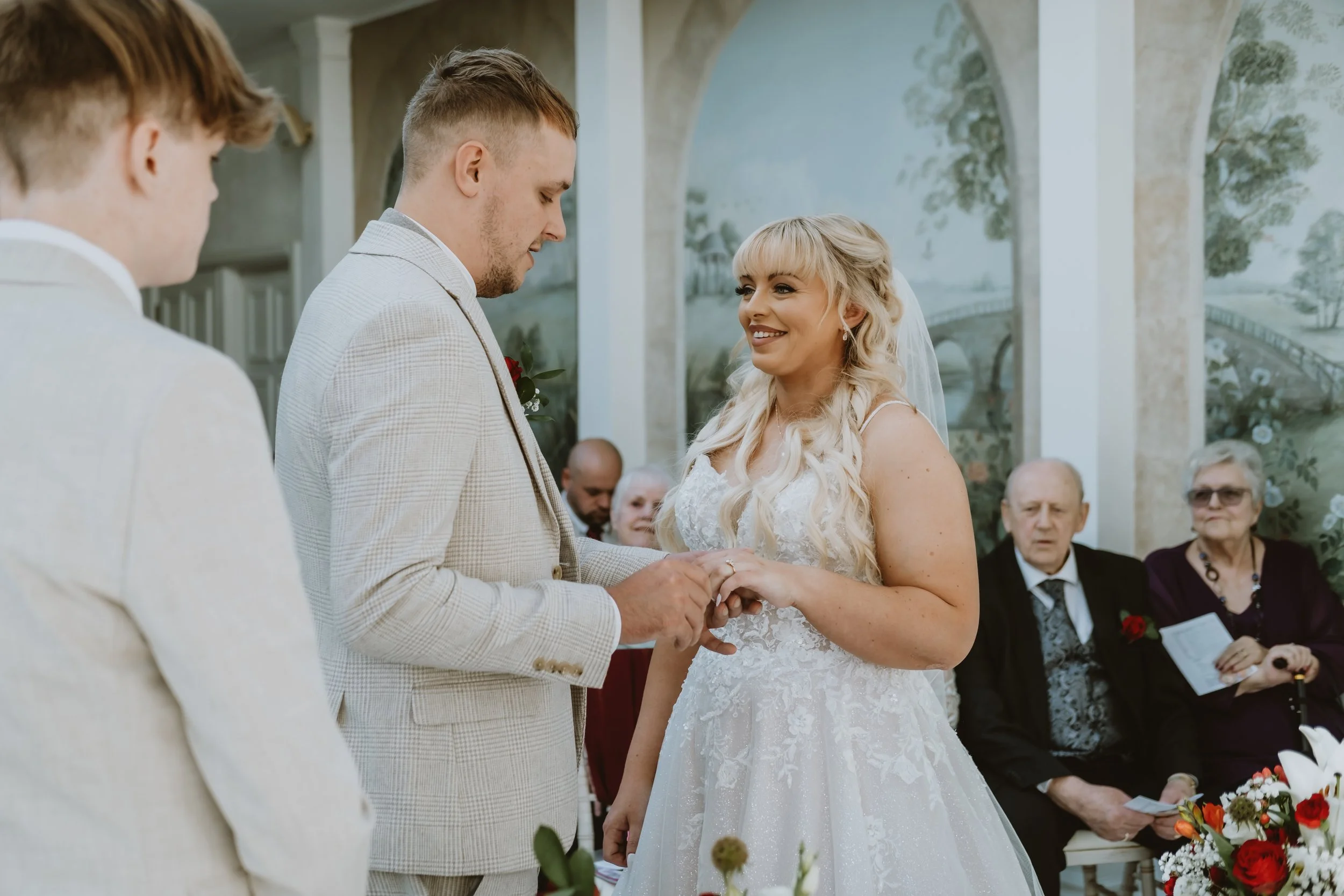 Her wedding dress was a stunning Maggie Sottero gown from Brides of Ashby, in a soft champagne tone with a delicate lace overlay. It suited Charlotte perfectly and she looked absolutely incredible.