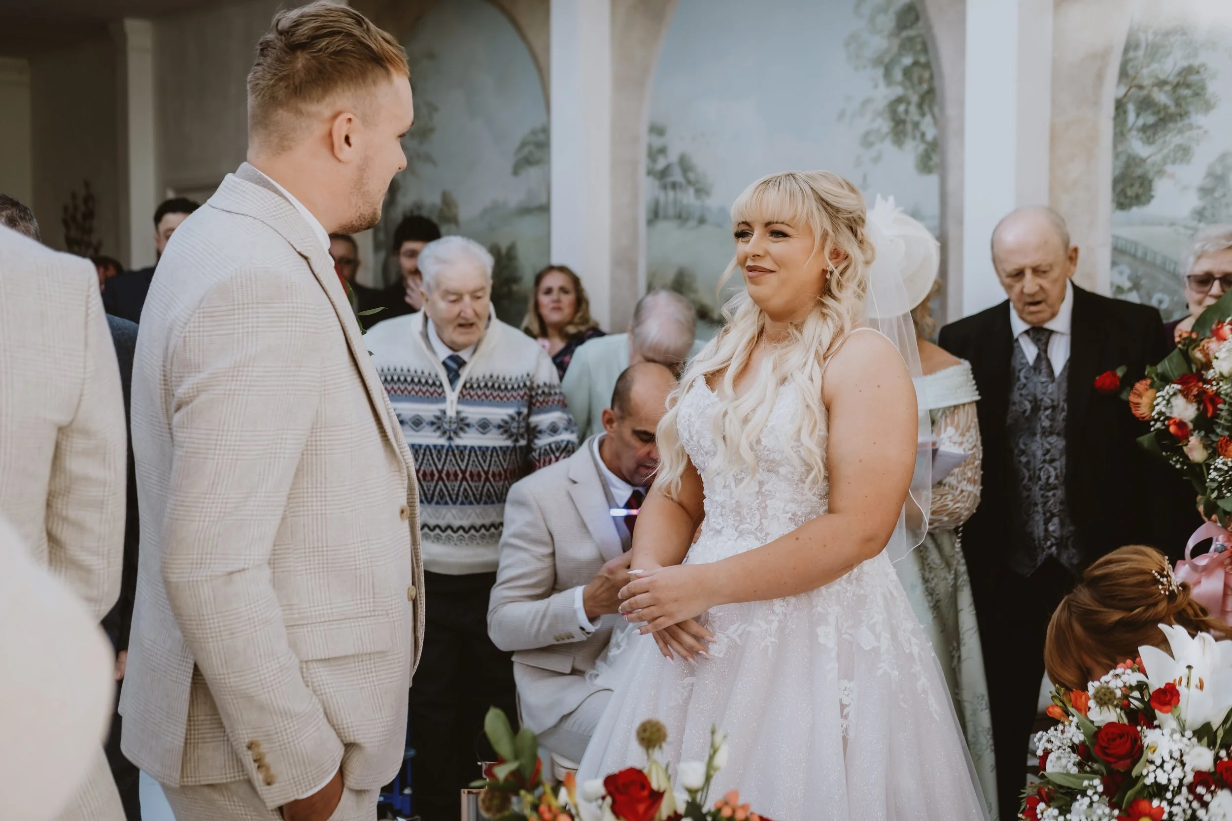 One thing that immediately stood out again was the ceremony room. It’s an absolute sun trap, filled with beautiful natural light, and it has the most striking mural backdrop, a wonderful setting for photographs.